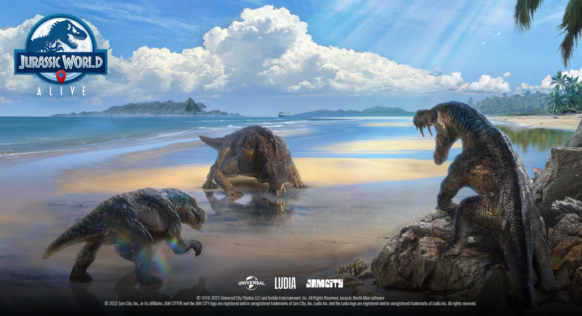 話說魯本一家四口人,早在大女兒落水後,就一一跳海離開了佐拉的隊伍,展開了不同的冒險支線。眾人所抵達的聖于貝島(Ile Saint-Hubert),雖是電影虛構的一座島嶼,但島上大多數的叢林與沼澤場景,都是演員們親赴各種惡劣環境下進行的實景拍攝:氤氳的水氣、潮濕的土壤與盤根錯節的樹根,伴隨茂密植物的掩蓋,好像隨時會有恐龍一躍而出將人吞噬,對比之前侏羅紀世界系列中明顯的人為造景,在本次導演的鏡頭語言呈現下,增添了更多驚悚的寫實感與沉浸體驗。其中後段一家人於河邊遭遇霸王龍追擊的驚險逃生,更可算是系列中數一數二精彩的亮點:編劇將原作麥可·克萊頓小說中的片段加以修改,將30年前CG技術上無法達到的遺憾,在這次的重生中完美的呈現。