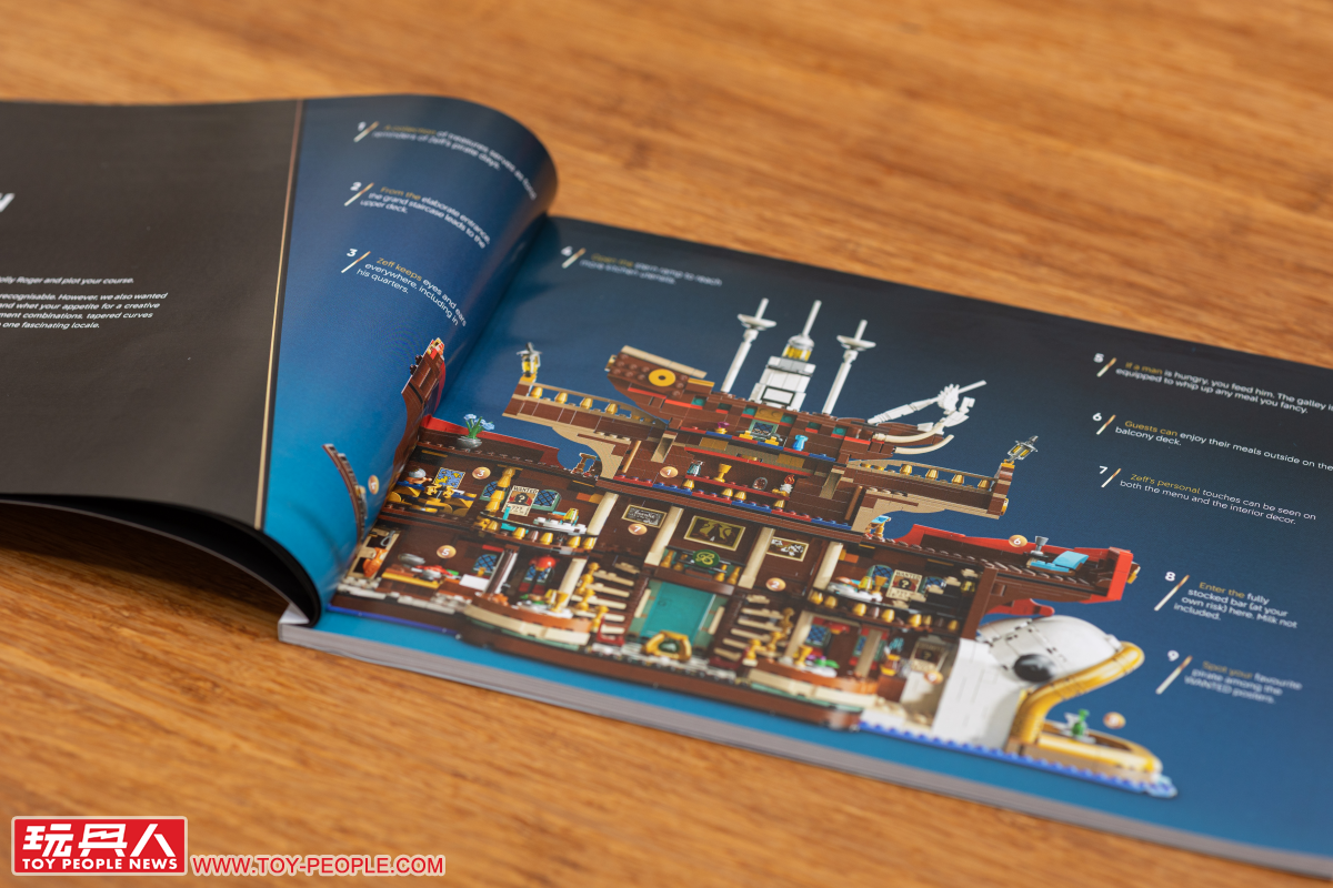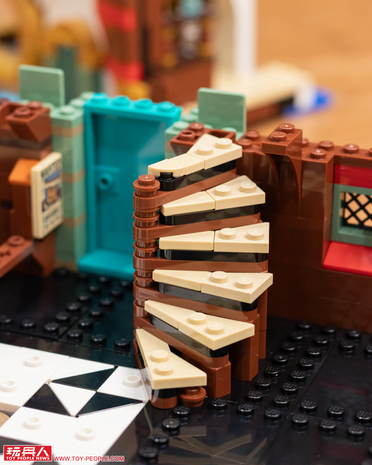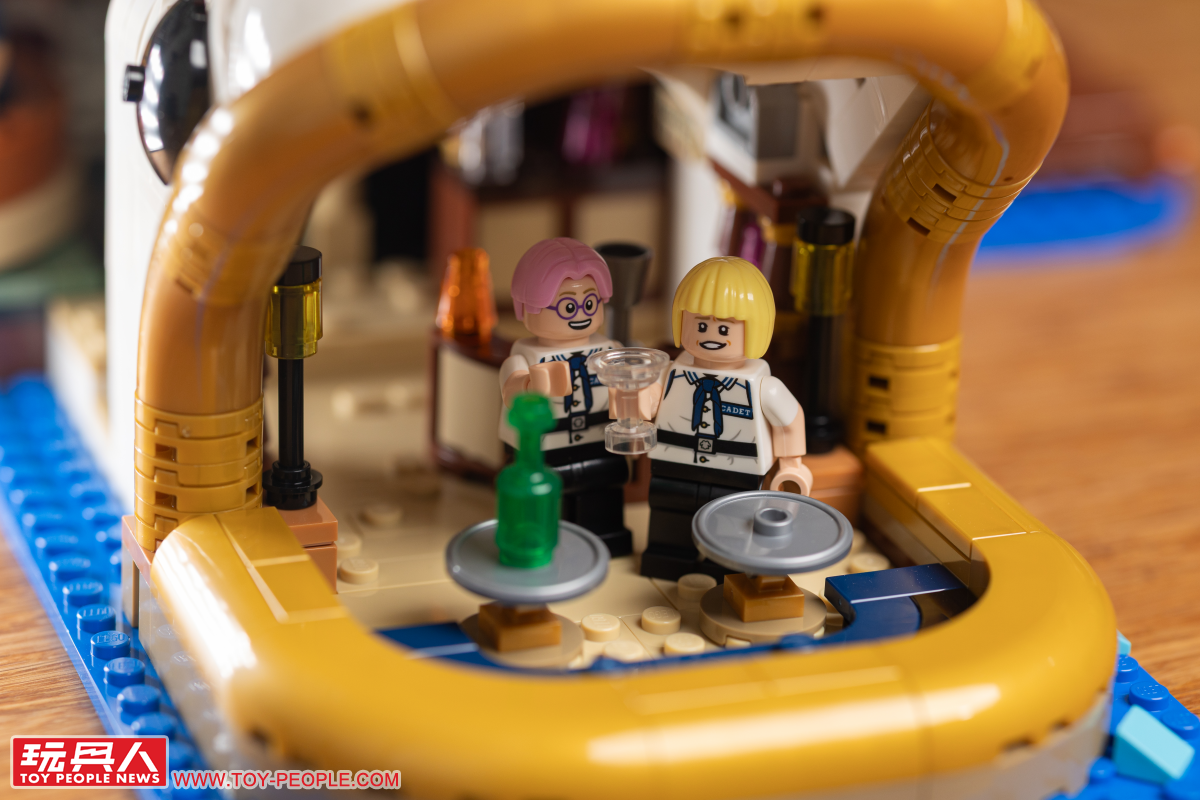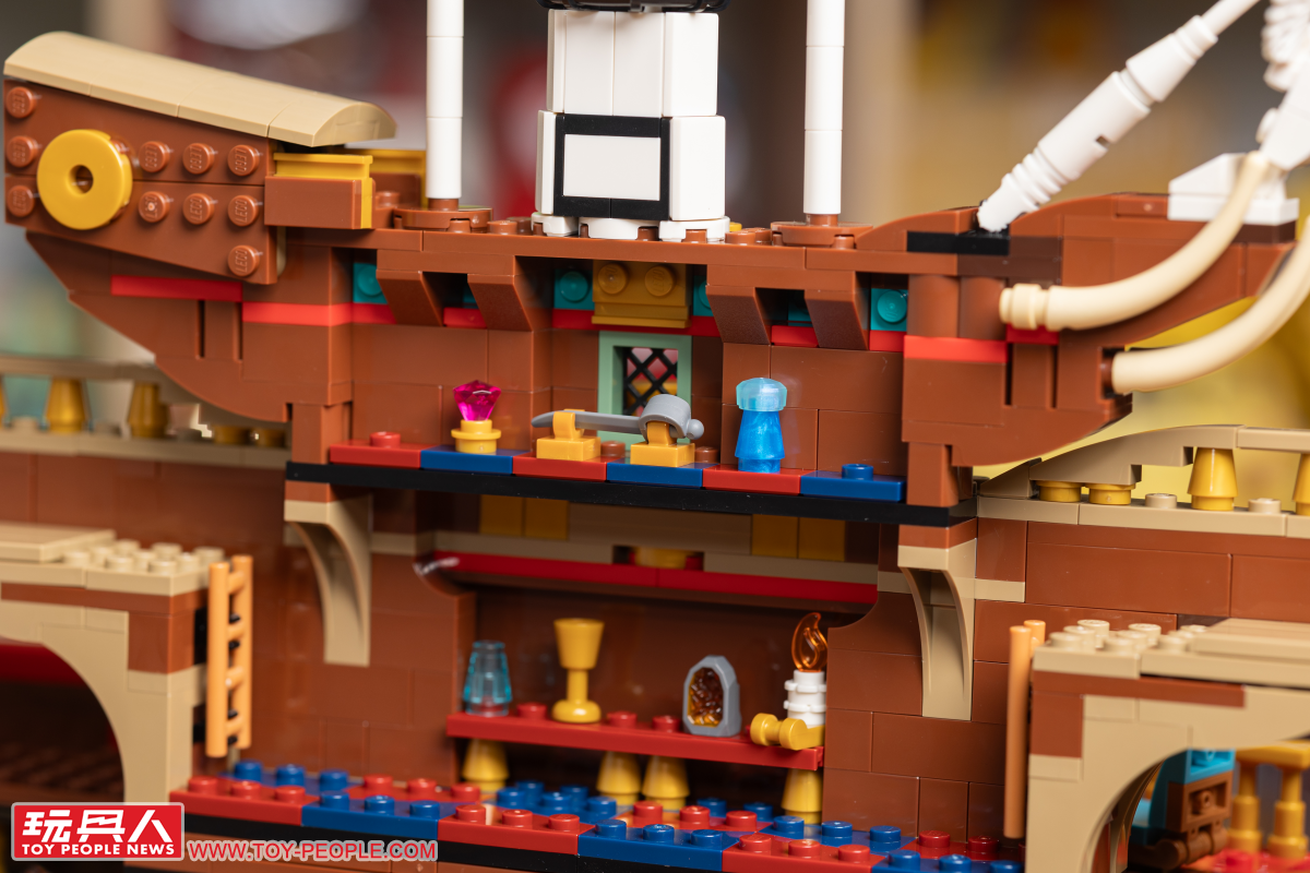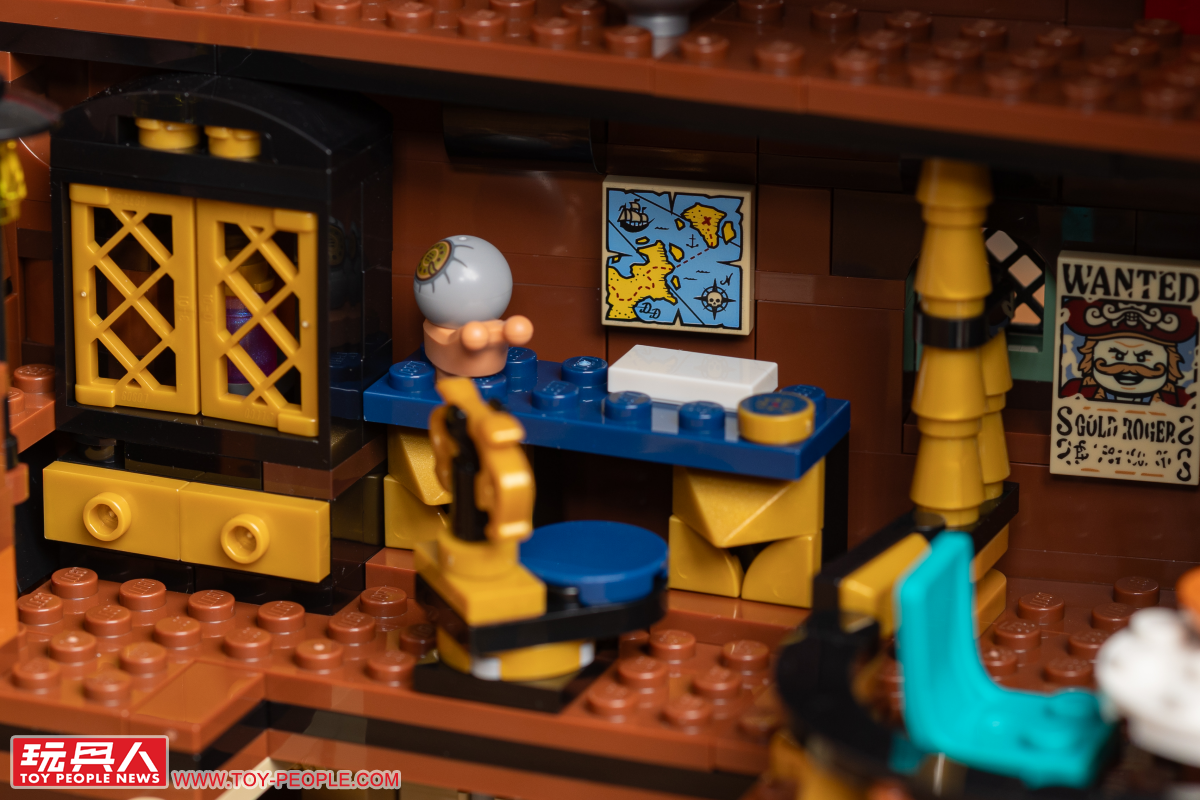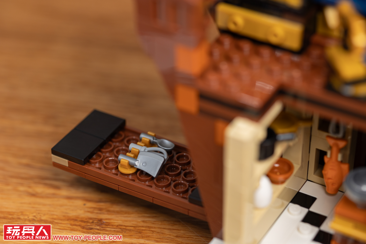 在首波的《航海王》LEGO 商品中,屬於零件數最多、體積也最大的海上餐廳,組完之後果然是十分壯觀。以小編個人的遊玩體驗來說,不僅在外觀上得到了許多刺激與靈感(尤其是魚頭的堆砌),同時呈現出三層樓的開放式內裝構造也非常精彩,從旋轉樓梯、二樓的地板、戶外的用餐雅座等,加上位於甲板的戰鬥機關、可旋轉的多人座位、隱藏在廚房牆角的收納架、哲普的辦公室,都值得細細品味。