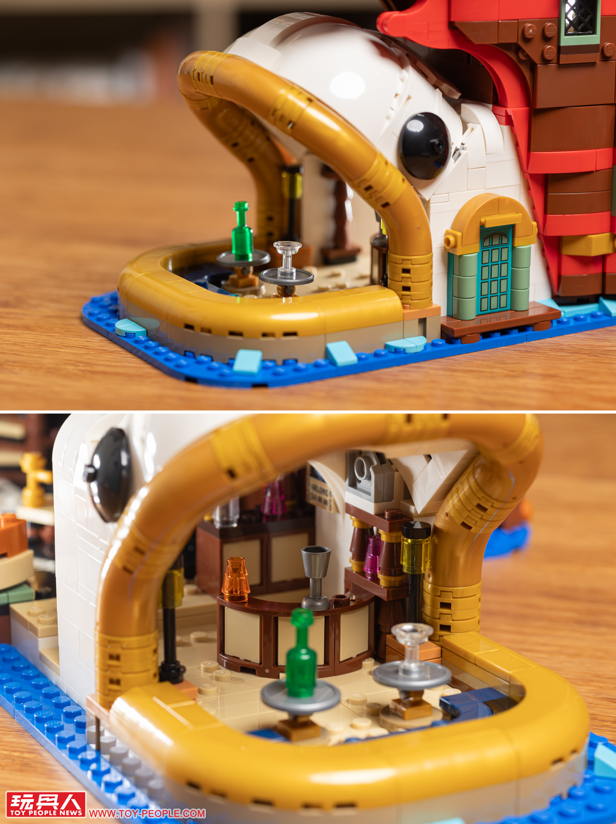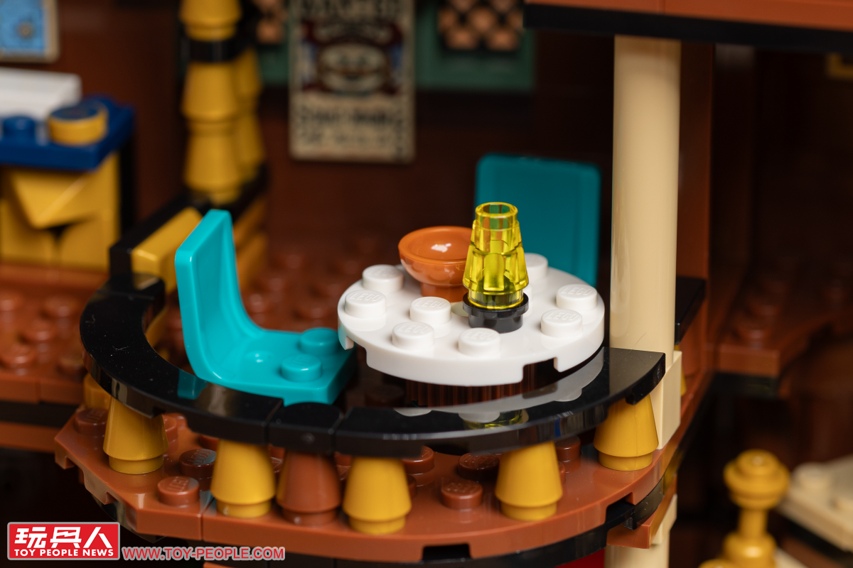 ▼ 兼具獨特造型風格&空間感的魚頭也把酒吧的吧台、桌位簡單地還原,雖無法比擬影集中的氣派華麗,但在樂高模型中這個區塊可是一大亮點呢!