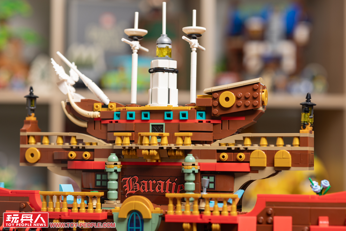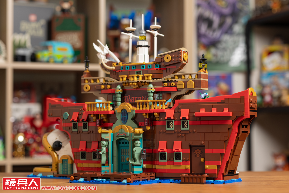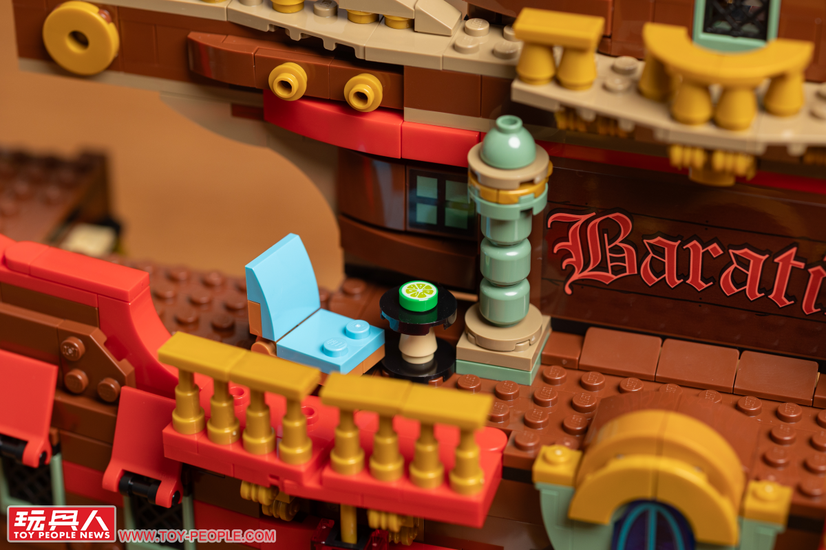 在 NETFLIX《航海王》真人版影集中,位於東方藍桑巴斯海域的海上餐廳芭拉蒂是在第五集「芭拉蒂歡迎您!」正式登場,除了經典的魚頭元素之外,外觀與色彩調性跟原作設定擁有不小的差異,內部空間更是相當寬敞,同時也設置了許多戶外雅座,小編個人認為絕對可以用華麗二字來形容。樂高化之後整體採用大量的深褐色零件,並以紅色、金色、湖水綠零件點綴,是一款兼具外部還原度與內裝細節的模型,趕快來看看吧。