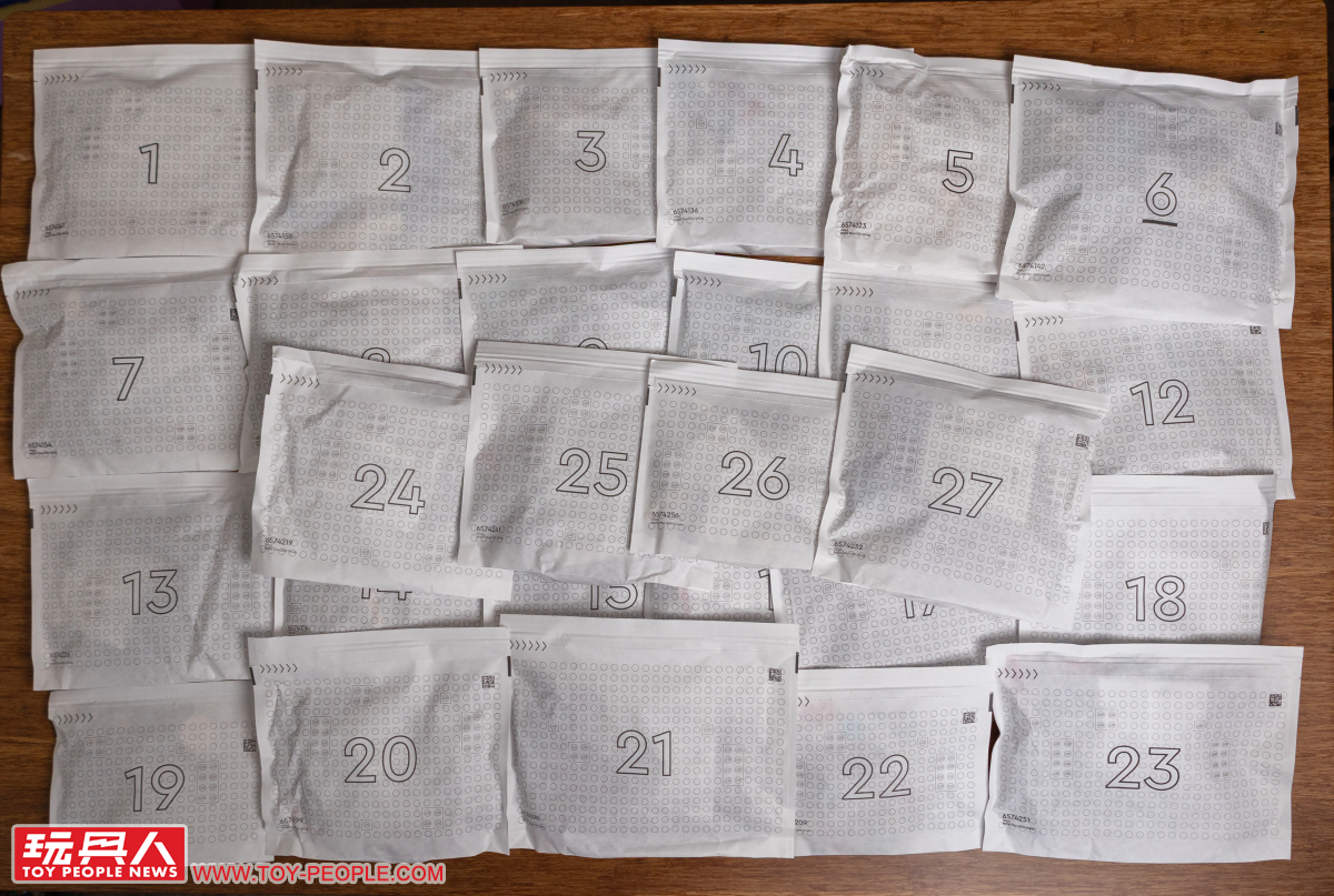 ▼ 那我們就趕快拆開看看內容物!3402 片零件一共有 27 包編號零件。