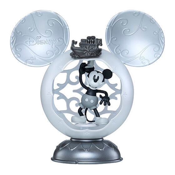 「迪士尼角色 桌面模型2-米奇老鼠收藏-」轉蛋,將高約 90 mm 的轉蛋殼化身米奇造型的夢幻舞台,組裝上大耳朵後尺寸來到 13 公分,放在桌面擺飾相當有存在感~本彈收錄有:幻想曲、汽船威利號、米奇的大演奏會三種款式,刻有精緻雕紋的舞台隨著不同的款式有夜空藍、珍珠白與金屬灰三種質感的配色,無論是舞台上方的小銘牌還是米奇的造型都十分講究,展現十足的迪士尼魅力!