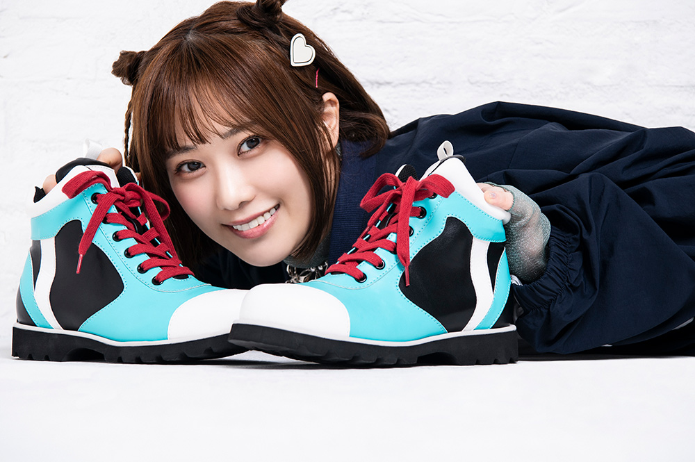 球鞋本體忠實還原千紗的款式,採中高筒的樣式,並採用靴子的外底大底,側邊配有拉鍊方便穿脫,尺寸也從 24 cm~ 28 cm都提供,男性也能穿上。購買還附贈這次球鞋發售特別繪圖的明信片,售價為 19,800 日圓,目前可於『the-chara』通販預購。