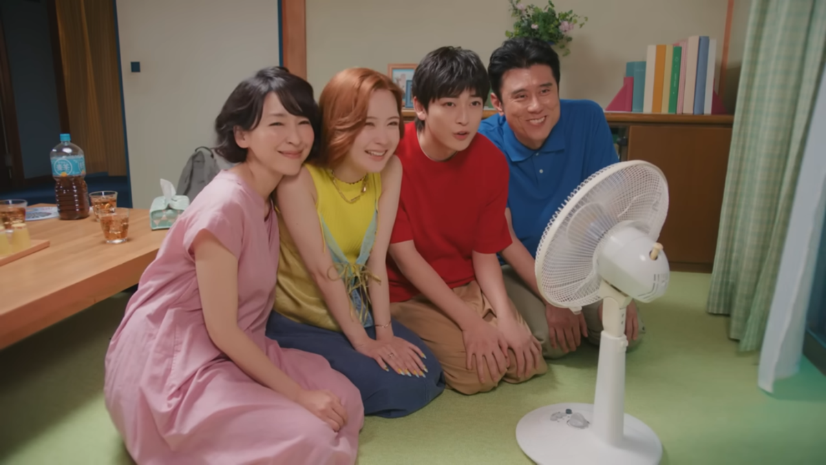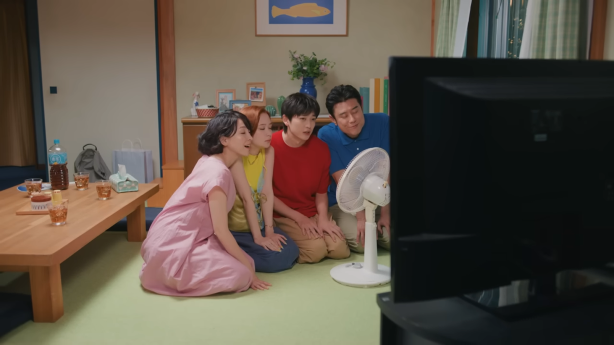 結果小葵想起小時候在這時候都會貼著電風扇吹風,於是拿出家裡收起來的電扇,一家四個人擠在電風扇前吹風,電視也剛好播著當年的「動感超人」,氣氛宛如回到二十年前的模樣。