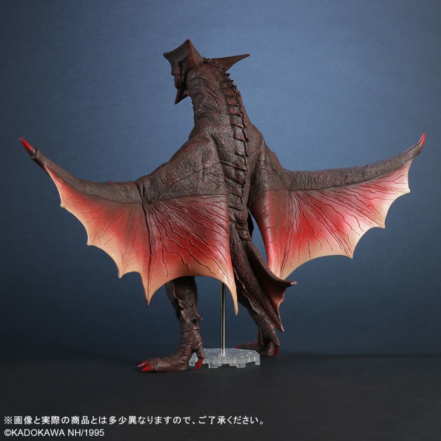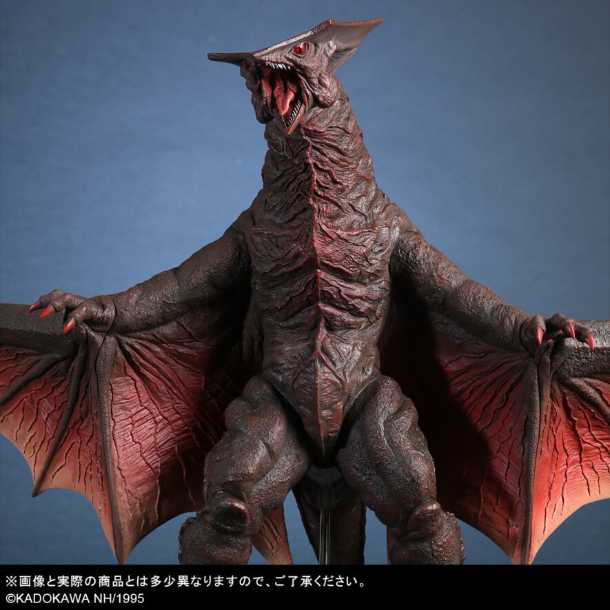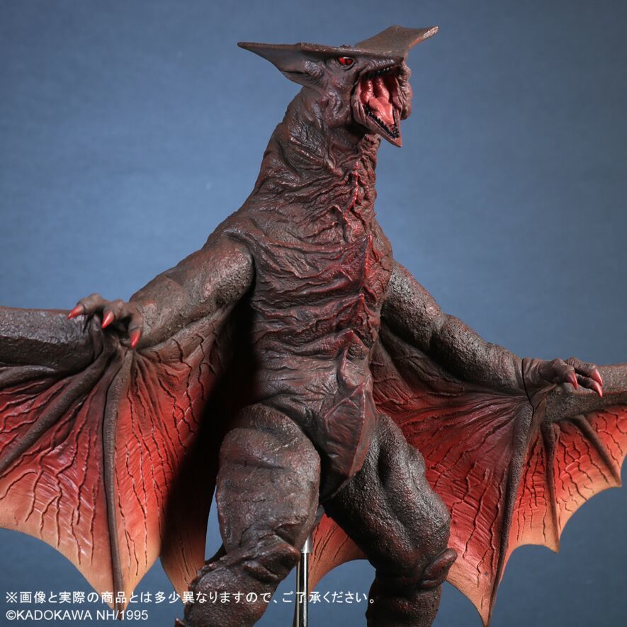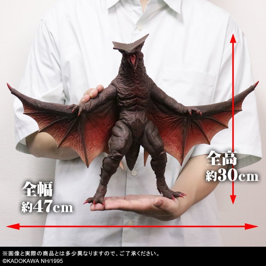 細膩表現猛禽般尖銳的頭部造型、色彩鮮紅的兇惡雙眼、肌肉線條、皮膜皺褶以及全身浮出表皮的血管,再現極具生物感的加歐斯成體造型。商品能夠搭配同為丹羽俊介擔任原型製作的「大映30cm系列 卡美拉(1995)」一同擺設,還原兩大巨獸最終決戰的對峙場景。