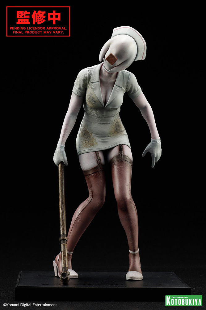 搶先公開的「OSHI WORKS泡泡頭護士」上色原型,預計將會是系列首彈商品,還原貼身的護士服與迷你裙,以及吊帶黑絲襪的性感穿搭,但如泡泡般光滑的肉團頭部搭配起來相當驚悚,刻畫出行走時的身軀扭曲,營造出一拐一拐拖著鐵管朝玩家走來的模樣...!