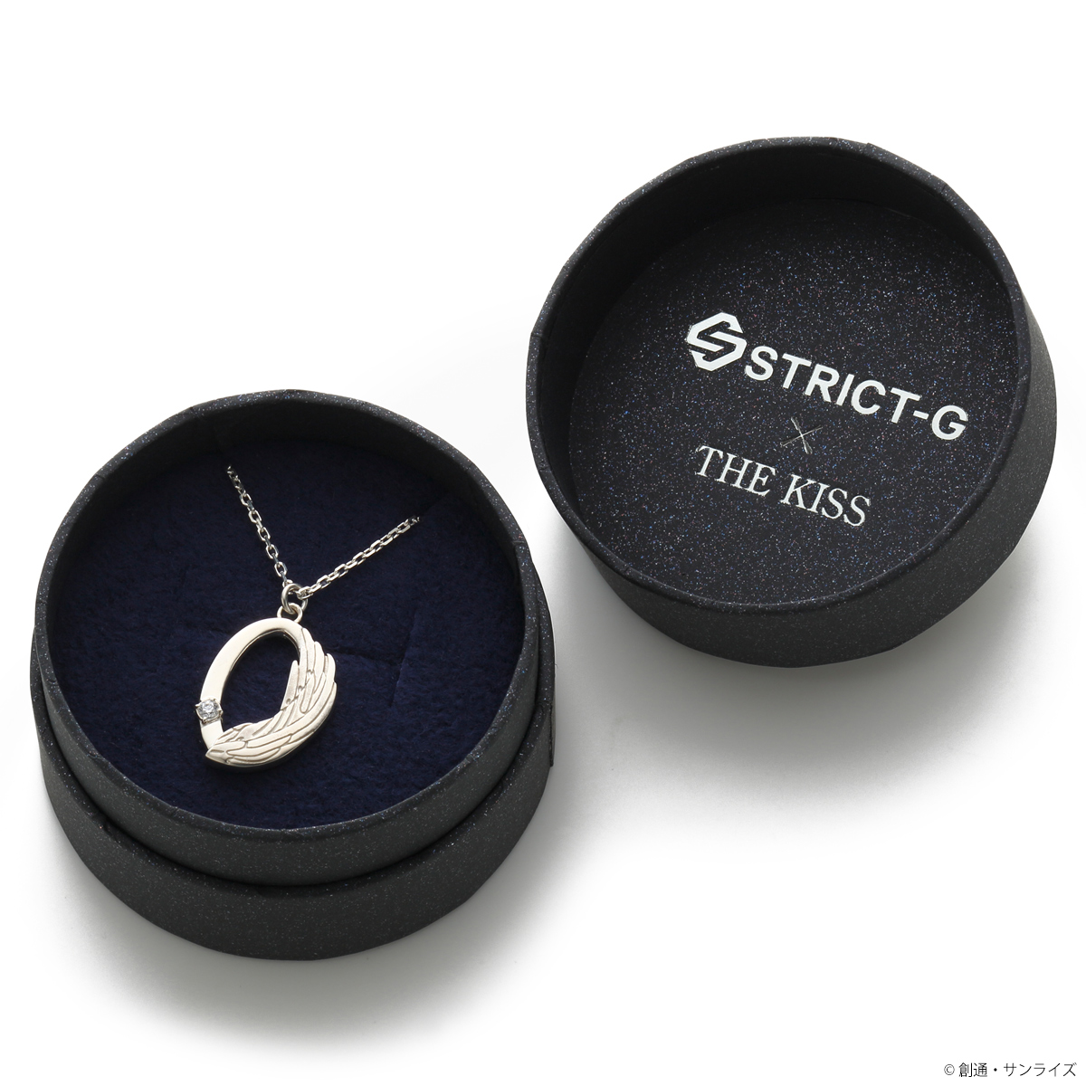 這款項鍊則是以劇場版《新機動戰記鋼彈W 無盡的華爾茲》的飛翼鋼彈零式特裝型為主題設計。吊墜是招牌的羽翼造型,中間閃爍著一顆小寶石,簡約又有辨識度。項鍊本身是滑動鍊條設計,長度可以依照穿搭自由調整。