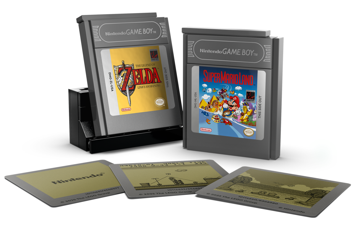 本組特色之一在於提供三款 Lenticular(視差)貼片螢幕,可呈現經典動畫效果,像是 Nintendo Logo 自動機的下墜動態,以及經典遊戲畫面,如《薩爾達傳說:織夢島》或《超級瑪俐歐樂園》。 螢幕可依展示情境隨意更換,為模型增添「畫面動感」的復古風味。 同時內附兩款可換遊戲卡匣:《薩爾達傳說:織夢島》與《超級瑪利歐樂園》,皆用積木組裝可自由插拔,融入真機操作式樣,重現昔日把玩的樂趣。