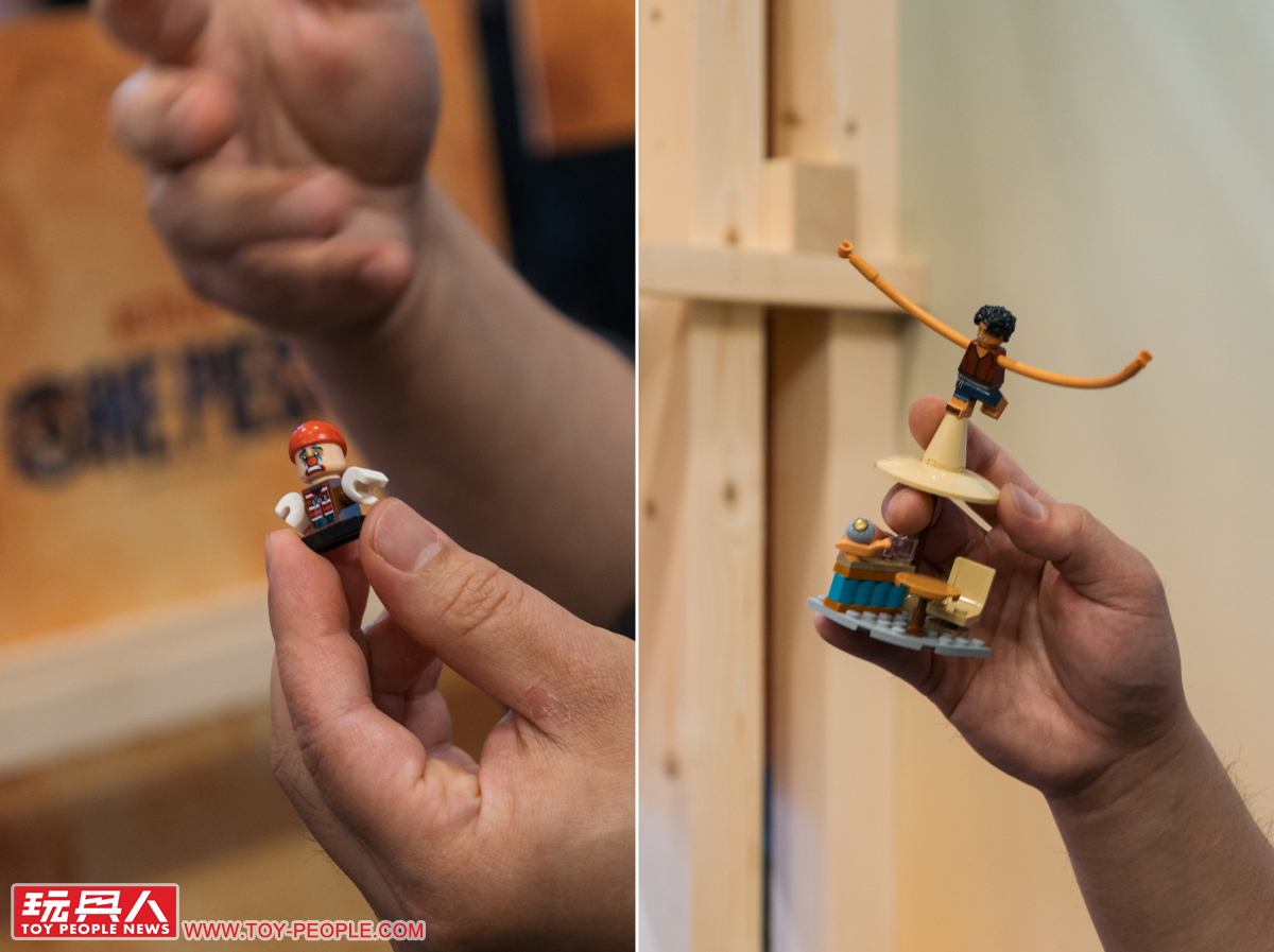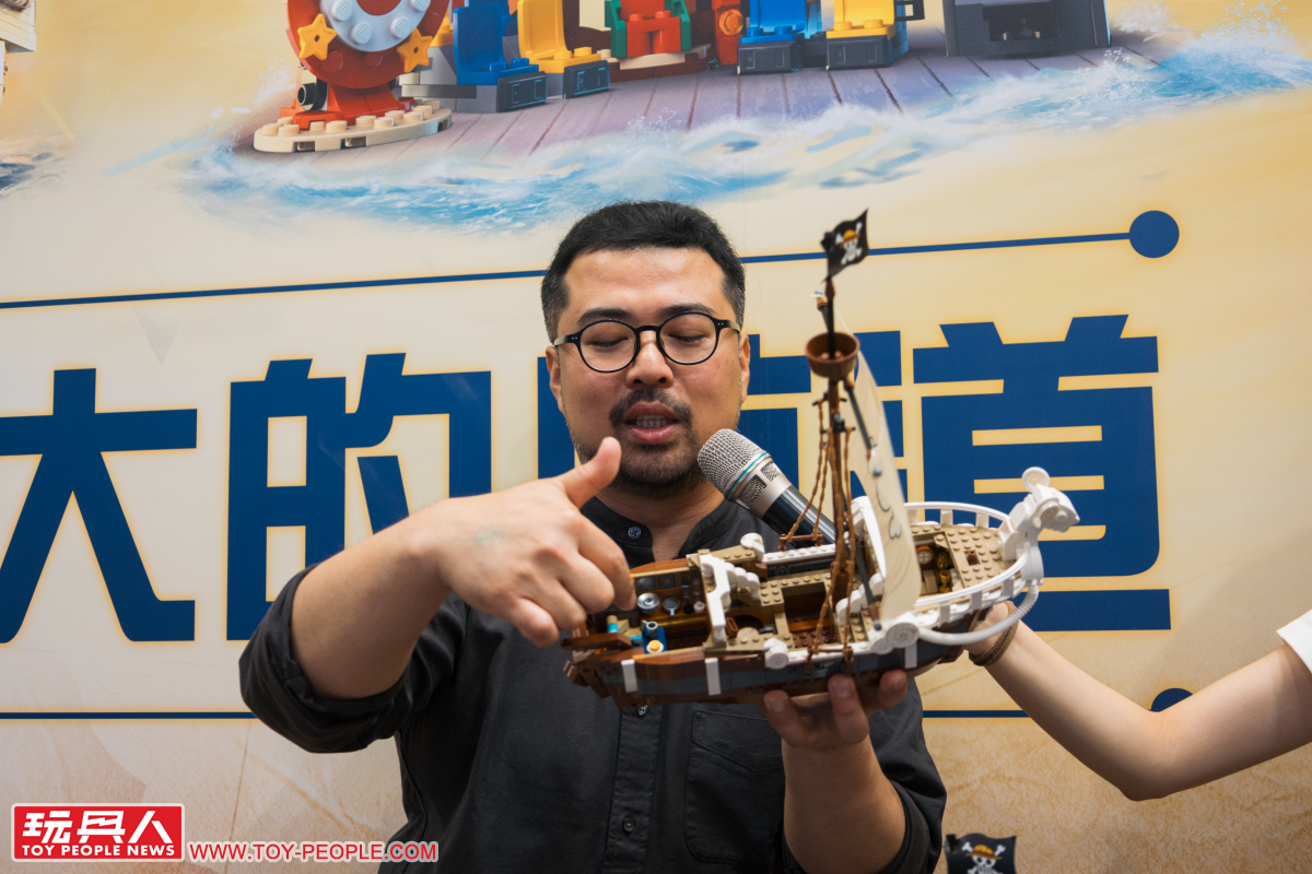 而今天讓小編無比興奮的活動環節就是請到了樂高總部第一位台籍設計師,同時也是樂高®《航海王》系列設計副總監「鄭以謙」到現場的分享會內容!不僅可以感受到鄭以謙對於航海王盒組的細節追求,比方說首度採用具備卡扣的草帽零件、可以讓索隆直接把刀固定在嘴前的和道一文字特殊零件、以及魯夫的橡膠手等,親眼看到設計師一邊把玩自己主導設計的盒組一邊介紹,對小編來說真的是超級感動。