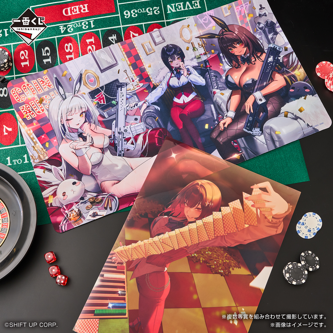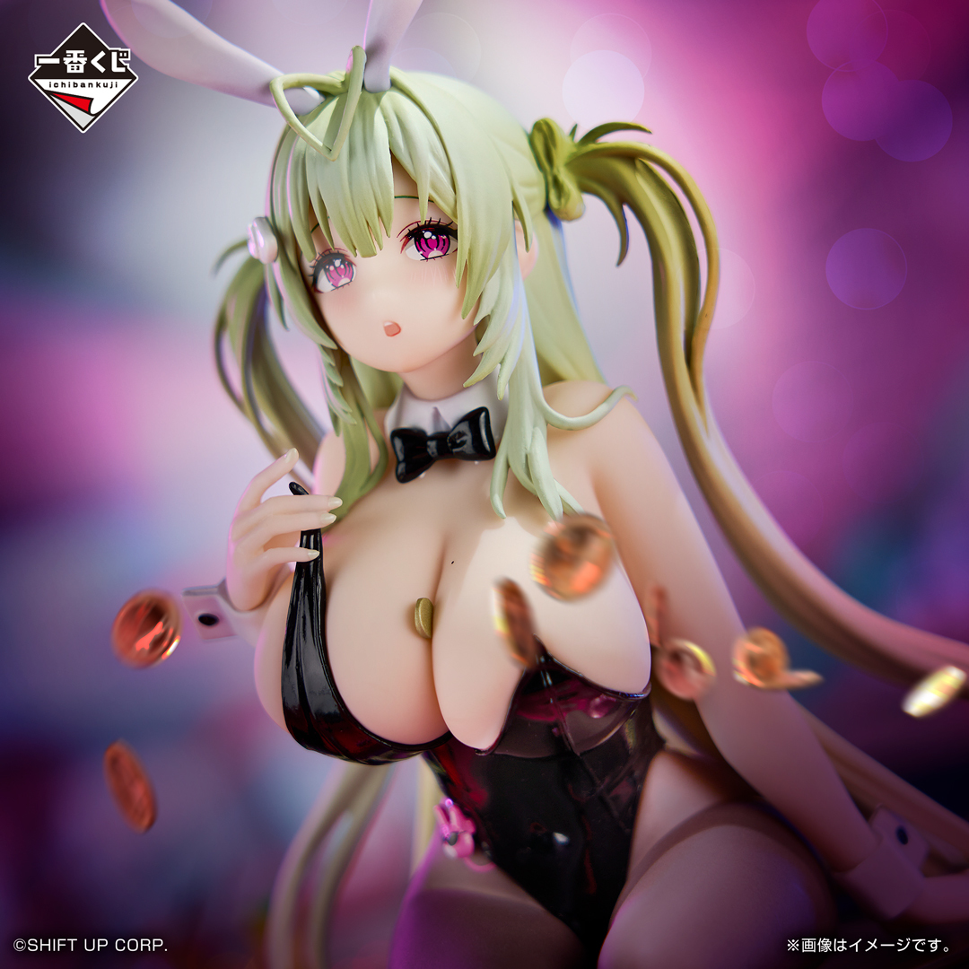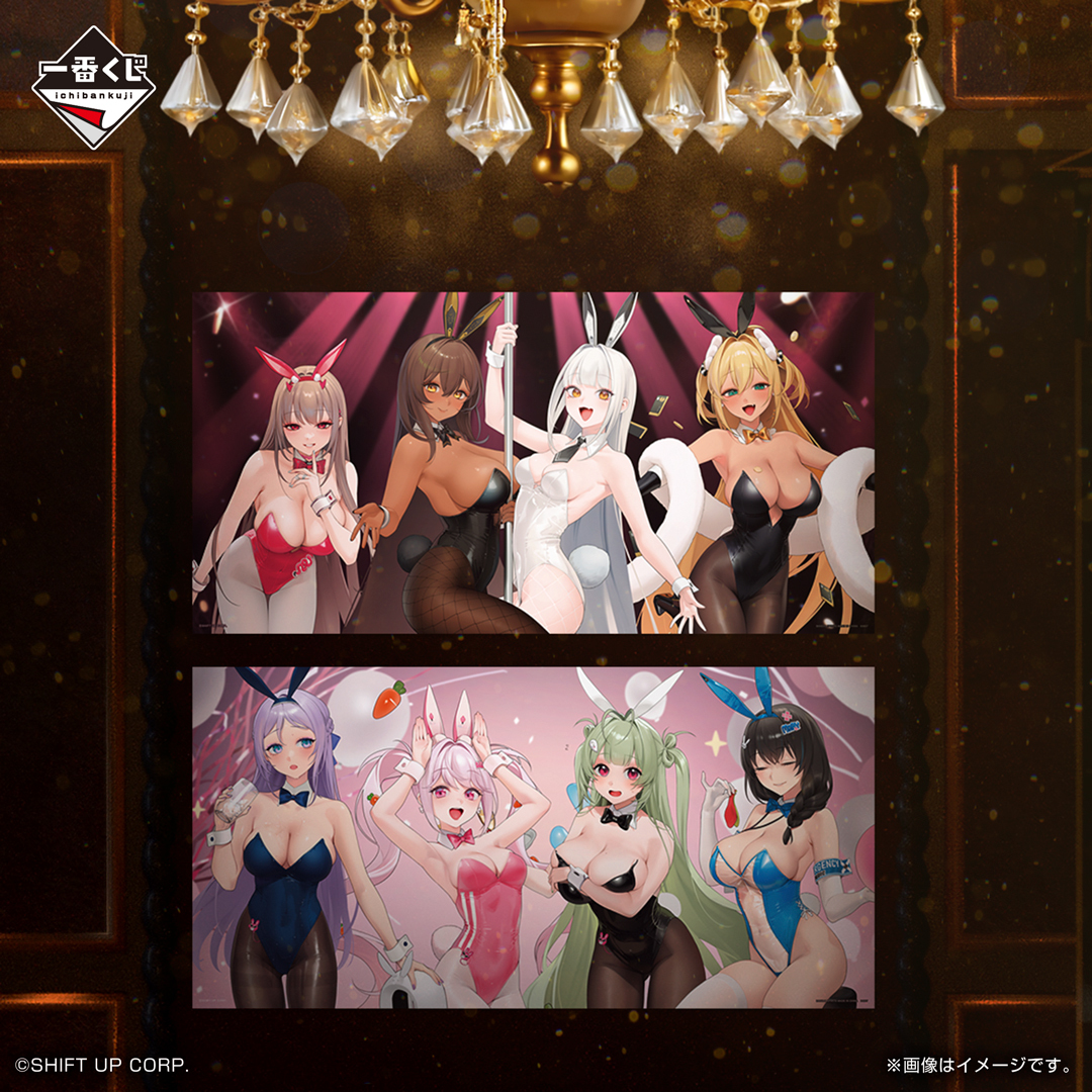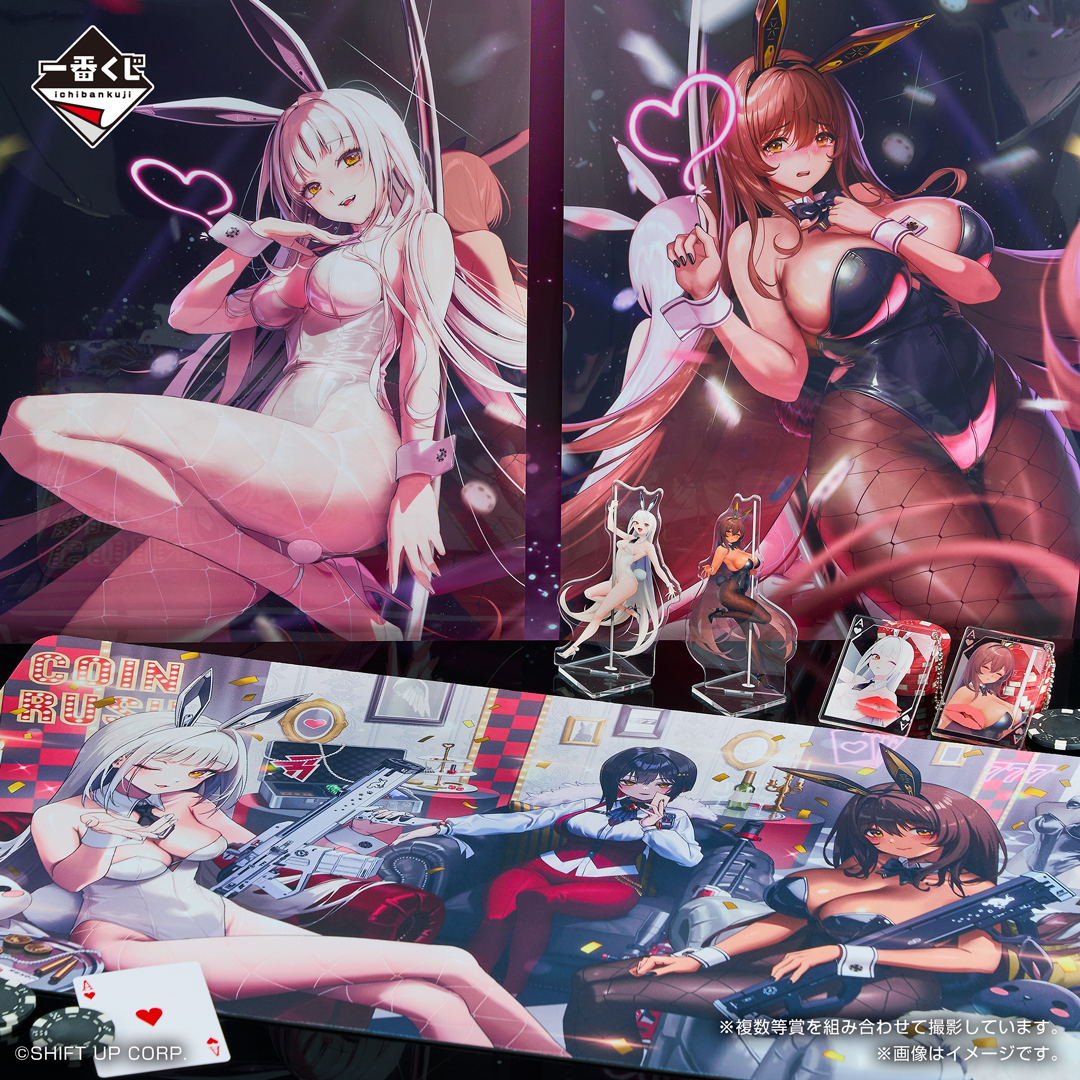 「一番賞 勝利女神:妮姬 CHAPTER5」,收錄有A~J賞+最後賞的豐富獎品,分別為金幣之戰的小白兔 A 賞 布蘭兒、小黑兔 B賞諾亞爾,重現在戰場上的射擊姿態,充分還原兔女郎的服裝細節、手上槍械與肉感的身軀意圖使人抽爆!另外還有C賞100公分的大型視覺布、D賞 大型壓克力胸像立牌、E賞 滑鼠墊、F賞 玻璃杯、G賞 壓克力立牌、H賞 透明海報、I賞 透明文件夾&貼紙、J賞 幸運之吻護身符吊飾...等性感又迷人的獎品~最後賞則是「索達:閃亮兔女郎」角色模型!
