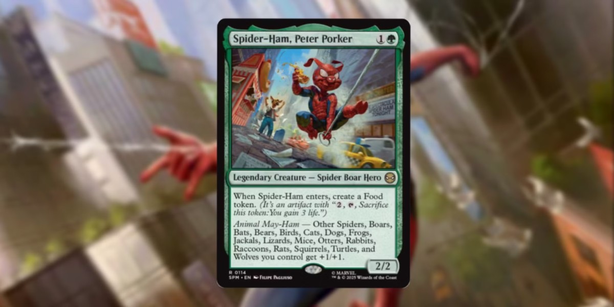 值得一提的是,蜘蛛豬這張卡牌似乎還導入了即將推出的《斑隆洛》(Bloomburrow)列所使用的新機制「Animal」,卡牌上同時包含了該系列的十種主要生物類型。隨著「Universes Beyond」系列正式納入標準賽制,玩家將能將這些新卡納入實戰牌組中,進行創意組牌。