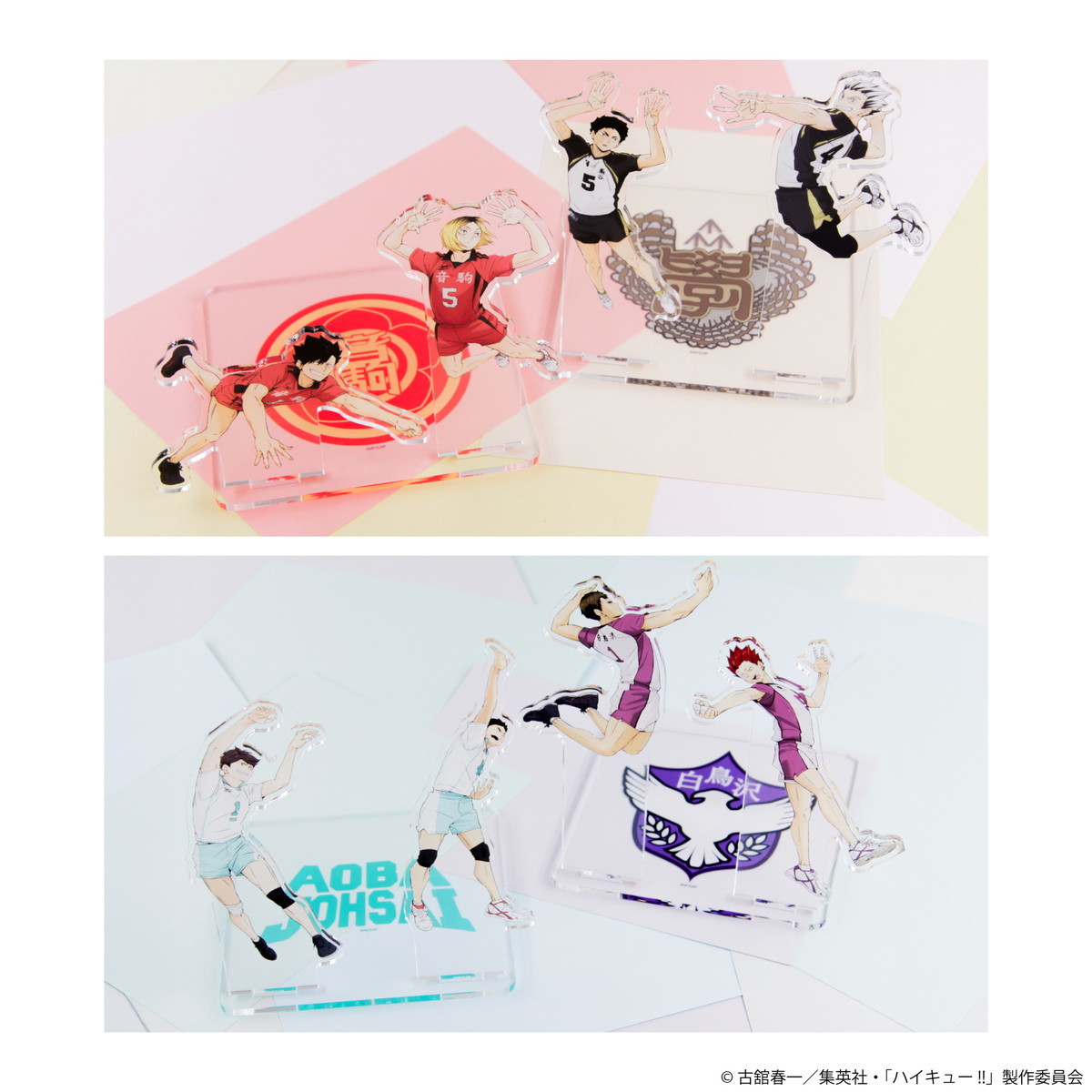 首先最吸睛的,就是以動畫10週年紀念插圖「連結(繋がる)」為主推出的「壓克力立牌杯墊組」,一口氣推出八種款式,分別對應:烏野高校、青葉城西高校、音駒高校、伊達工業高校、白鳥澤學園高校、梟谷學園高校、稻荷崎高校與鷗台高校。