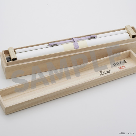 並附有豪華桐木製收藏箱,上面印有「WING GUNDAM ZERO [EW]」字樣,打開還有限量編號與 30 周年紀念 Logo。