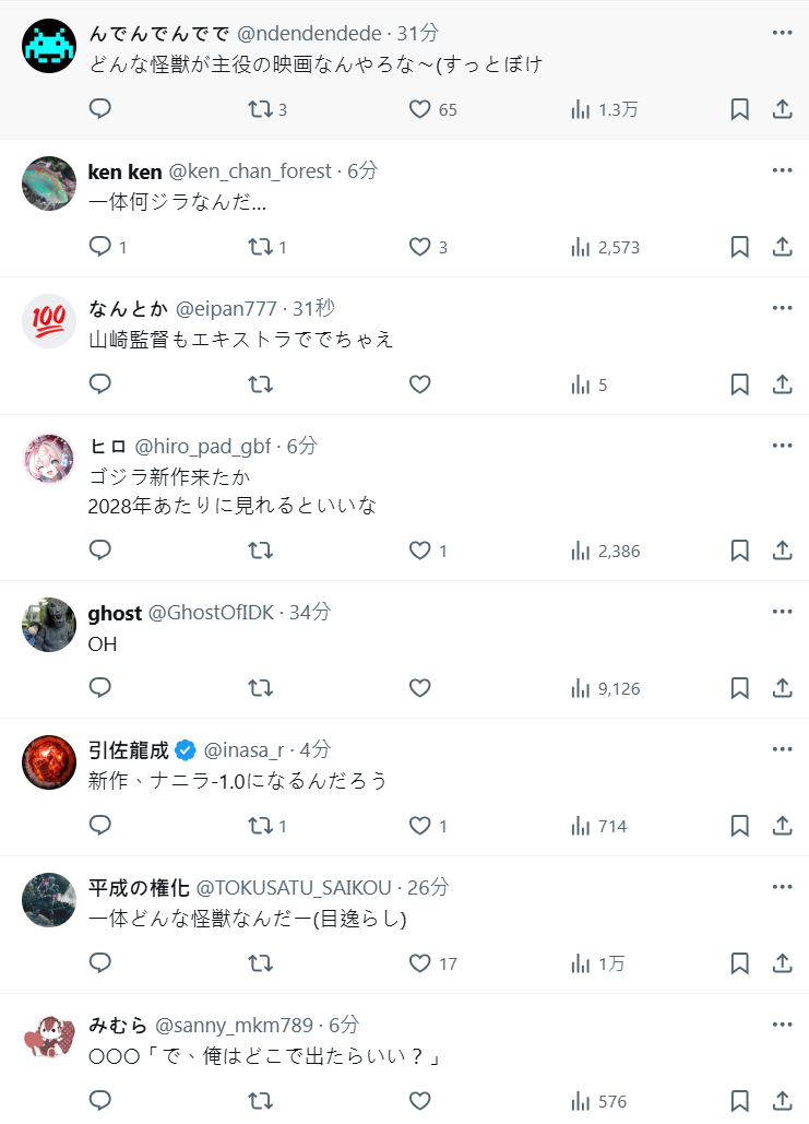 雖然官方沒有說到底是哪個怪獸為主角的電影,不過從《哥吉拉》官方 X 發出,又是山崎貴導演,很難不聯想到《哥吉拉》的新電影,讓不少粉絲相當期待。
