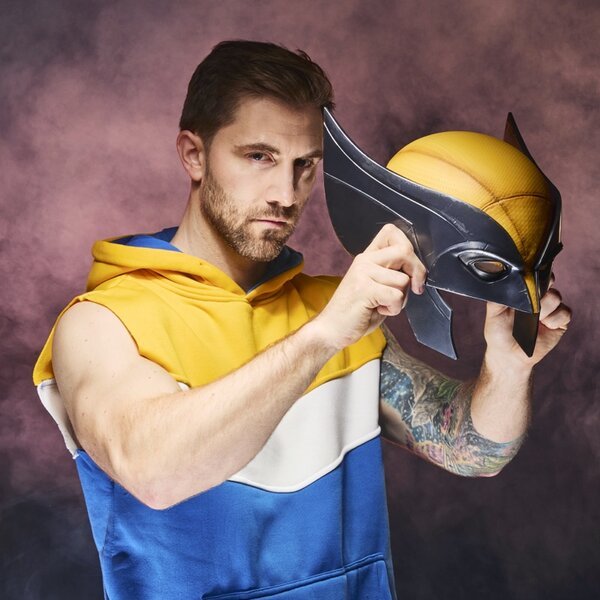 本次的《死侍與金鋼狼》將電影中休·傑克曼配戴的金鋼狼面具 1:1 複製,雕刻還原頭盔的外型,塗裝再現 X 戰警標誌的黃黑配色,並精緻的呈現掉漆與刮痕等戰損效果!頭盔為單一尺寸,內部附有可拆卸襯墊,提升配戴舒適度,並附有一組專用的展示支架,可以放在收藏櫃上展示或是戴上面具、拿起先前隨著電影上映再販的「死侍收藏互動頭」當作萬聖裝扮,不管怎麼玩都酷到不行!