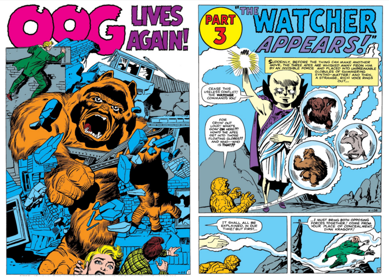 ▼左圖:出自《Tales of Suspense》第 27 期的 Jack Kirby 原畫。右圖:「觀察者」奧圖首次登場於《驚奇 4 超人》第 13 期