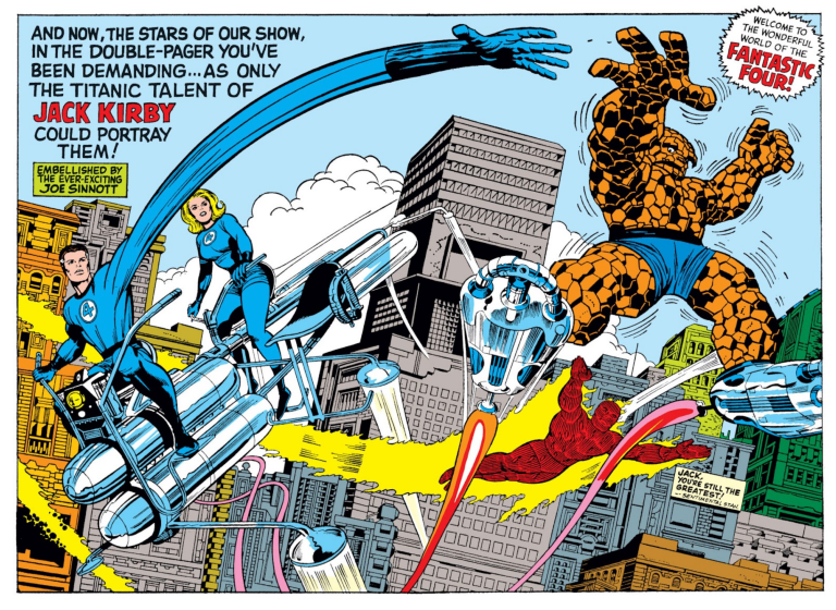 ▼由傑克·柯比與喬·辛諾特(Joe Sinnott)合作繪製的《驚奇 4 超人》漫畫海報
