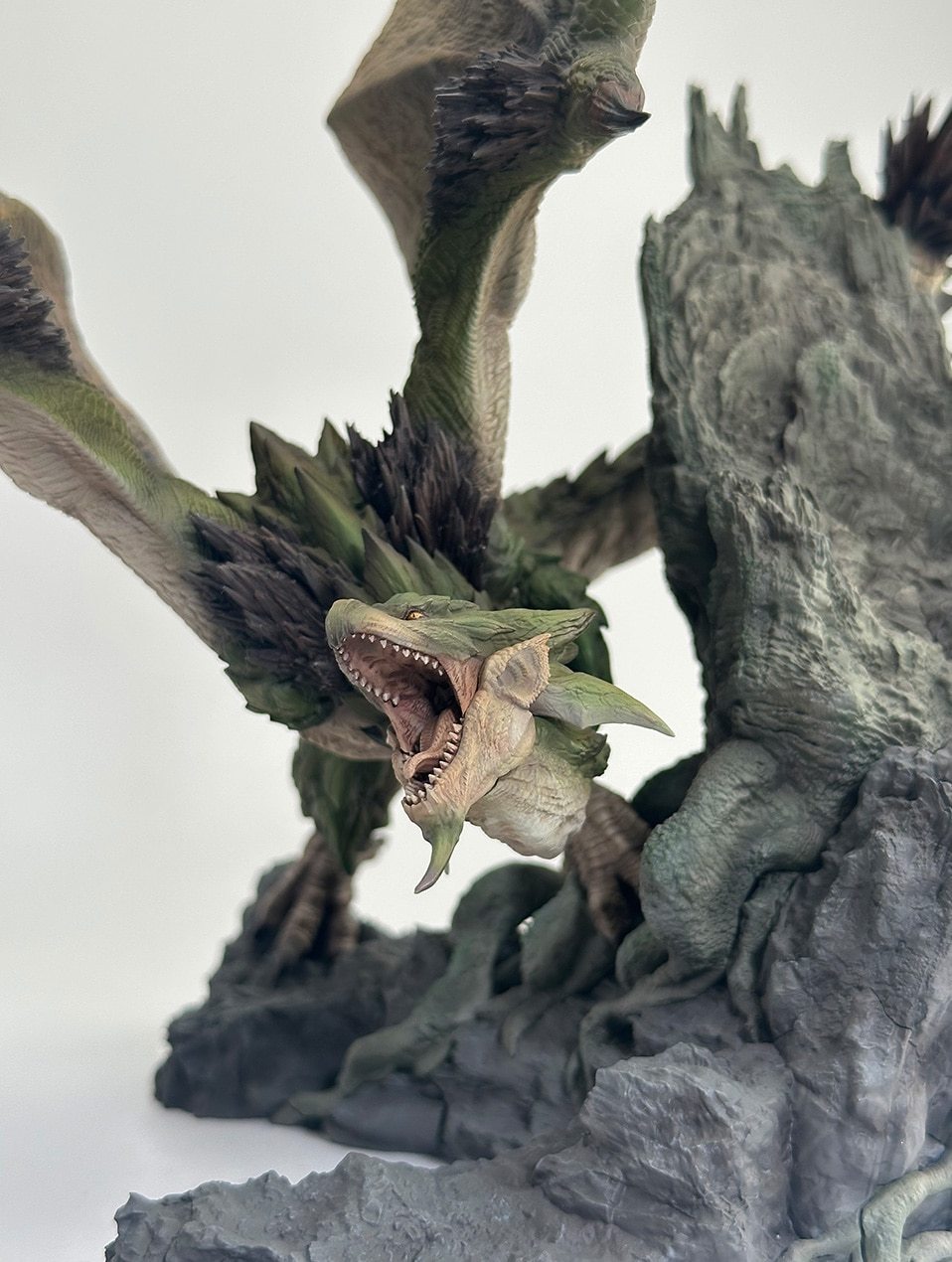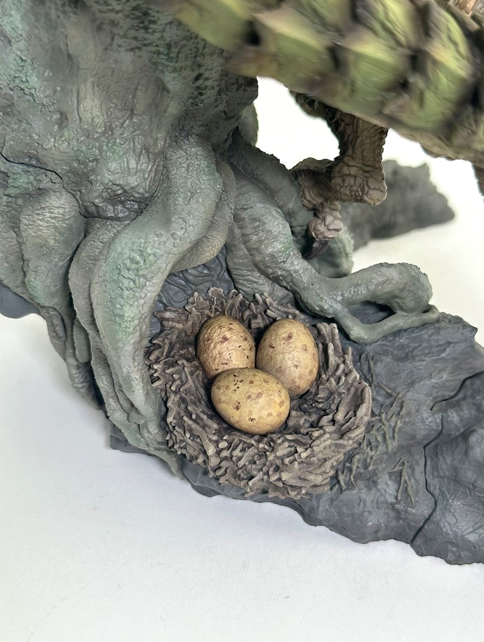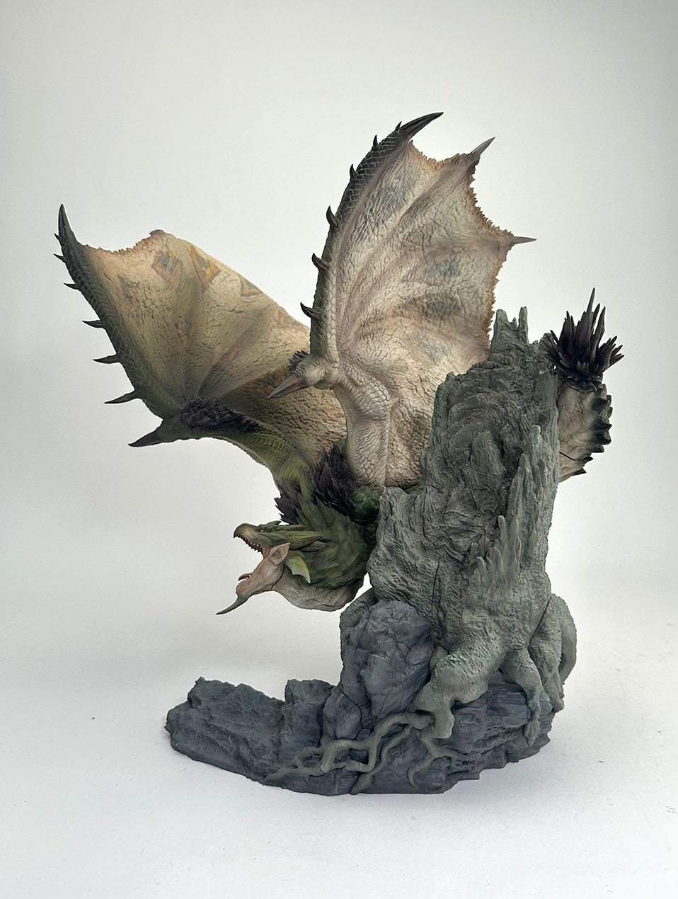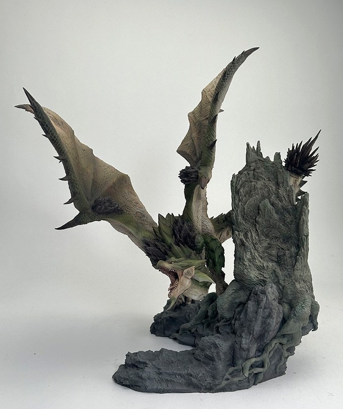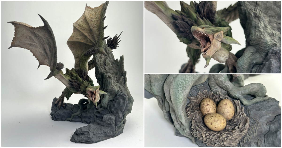 『CAPCOM FIGURE BUILDER Creator's Model 雌火龍 利奧雷亞 Ver.2.0』,由知名怪獸原型師 大山龍的徒弟-造形師 古市龍也擔任原型製作,基於進化的遊戲模型,採用新的詮釋,將雌火龍展開巨大的雙翼、霸氣咆哮模樣立體化。以高約 25 公分的尺寸打造,刻畫出盤踞在巢穴的姿態,翅膜的花紋、龍鱗細節與尾巴上有毒刺等細節仔細還原,並施以精緻的色彩塗裝,展現逼真的生物感。巢與火龍蛋被巧妙地設計在底座的背面,讓整體更加充滿張力!