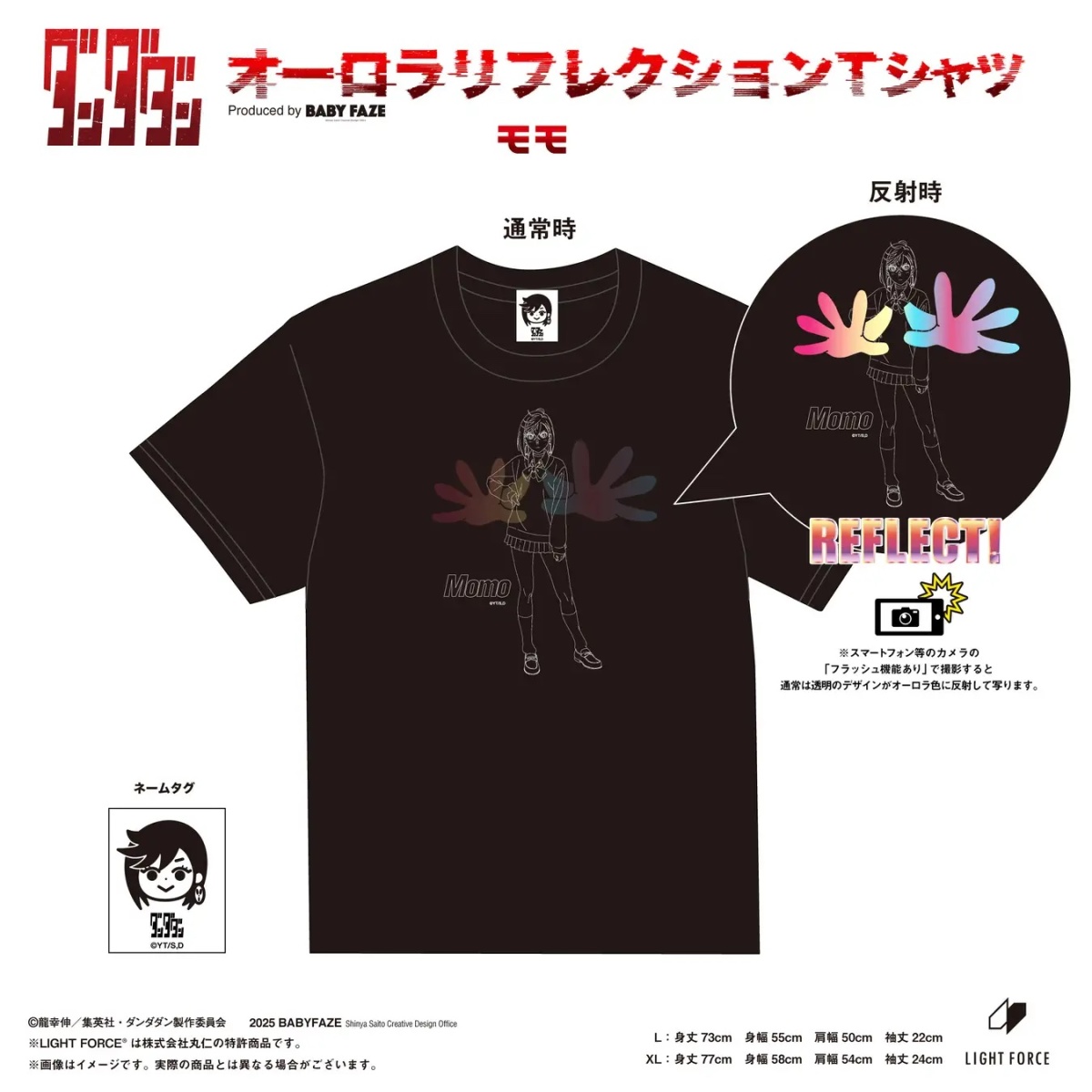 採用擁有國際專利的反光素材 LIGHT FORCE®,只要開啟手機的閃光燈拍照,隱藏圖案就會立刻顯現!像是從胸口伸出的「小桃的超能力之手」、變身狀態的「帥氣厄卡倫」,以及在隧道深處突然出現的「高速婆婆」三個經典橋段,都會在 T恤上瞬間重現,讓你一秒成為全場焦點!