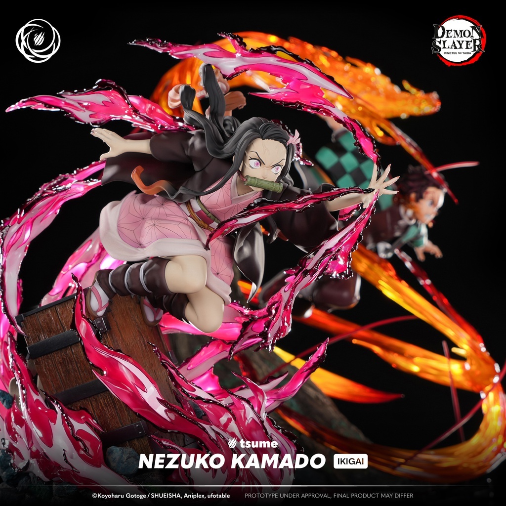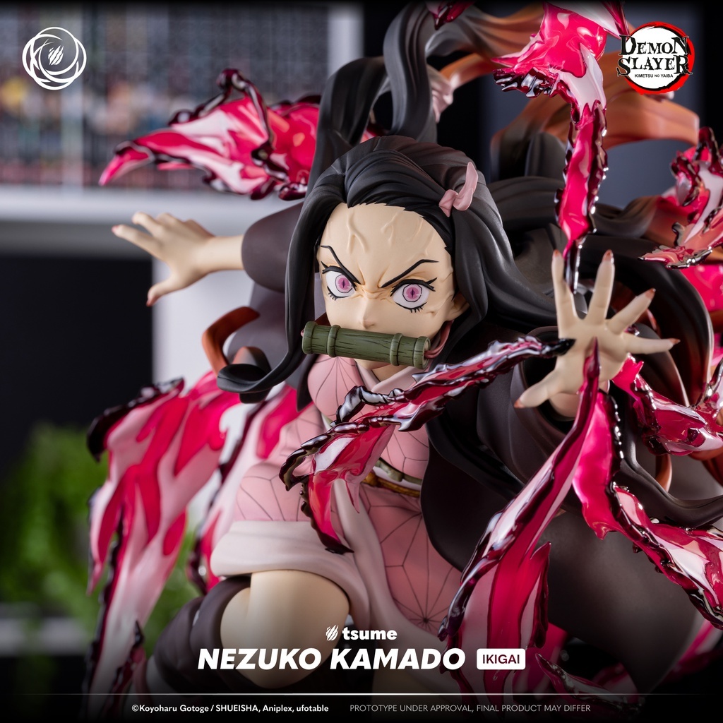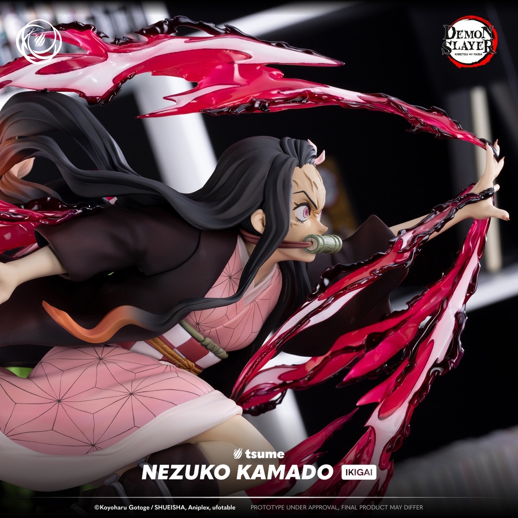 本作高約 37 公分,將禰豆子施展血鬼術時的戰鬥姿態躍動立體化。展現出銳利眼神、額頭暴起青筋的臉部雕刻傳達出禰豆子認真戰鬥時的強烈臨場感,全身服裝的細節表現、長髮的飛揚動感也相當精彩,還能發現禰豆子平常待在裡頭的木箱。