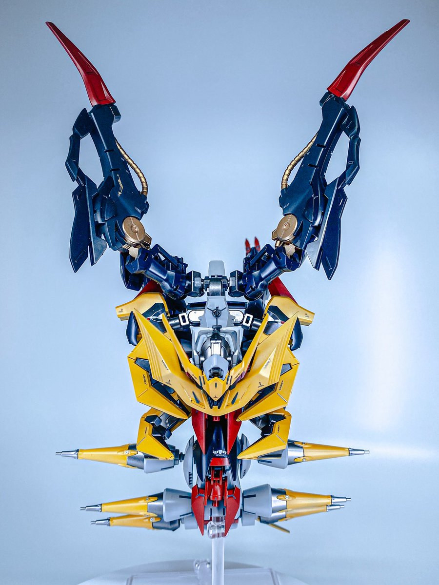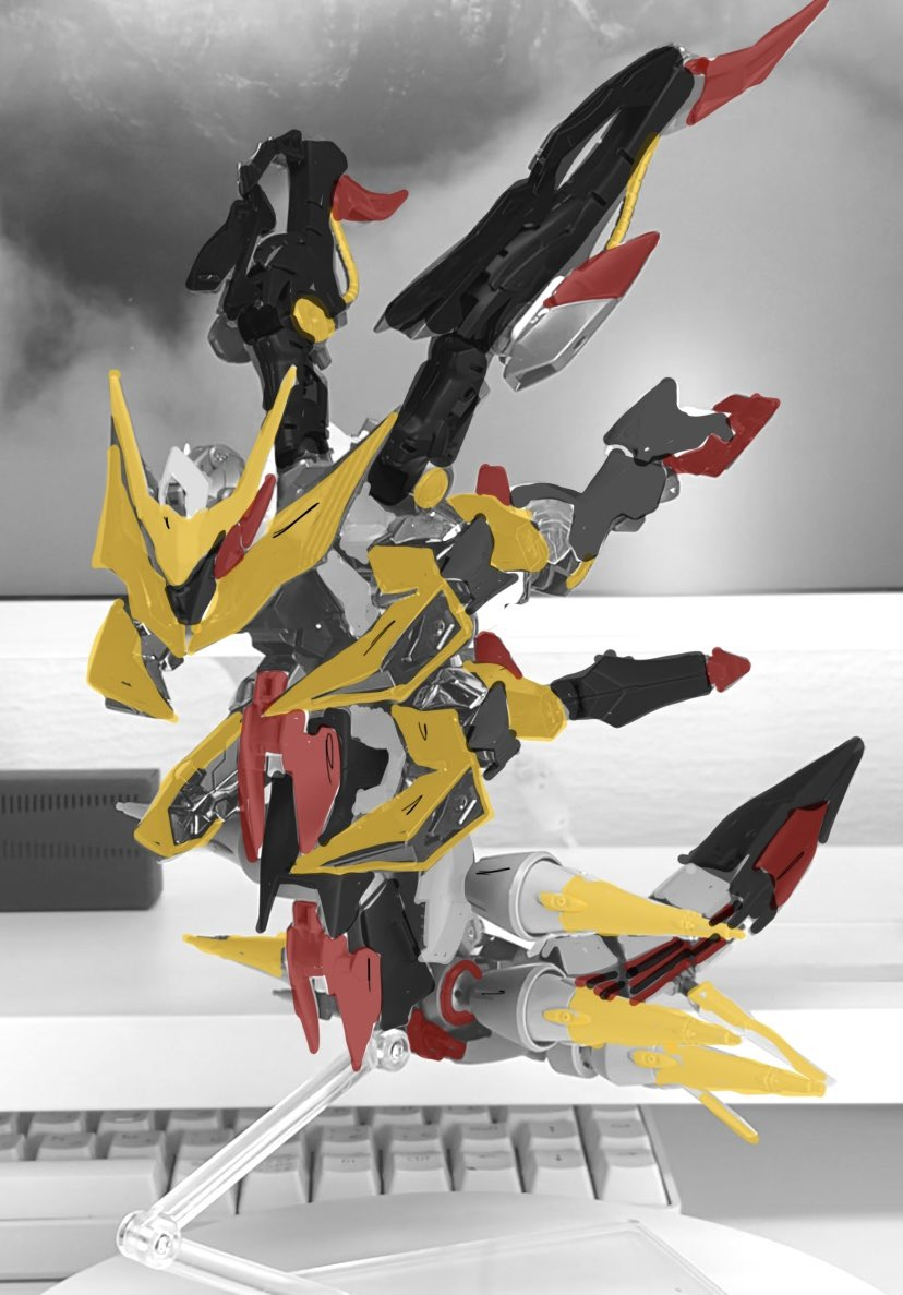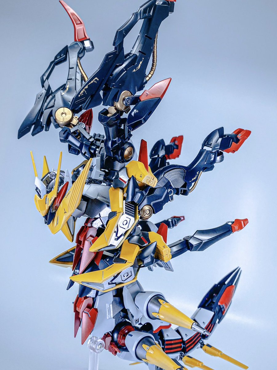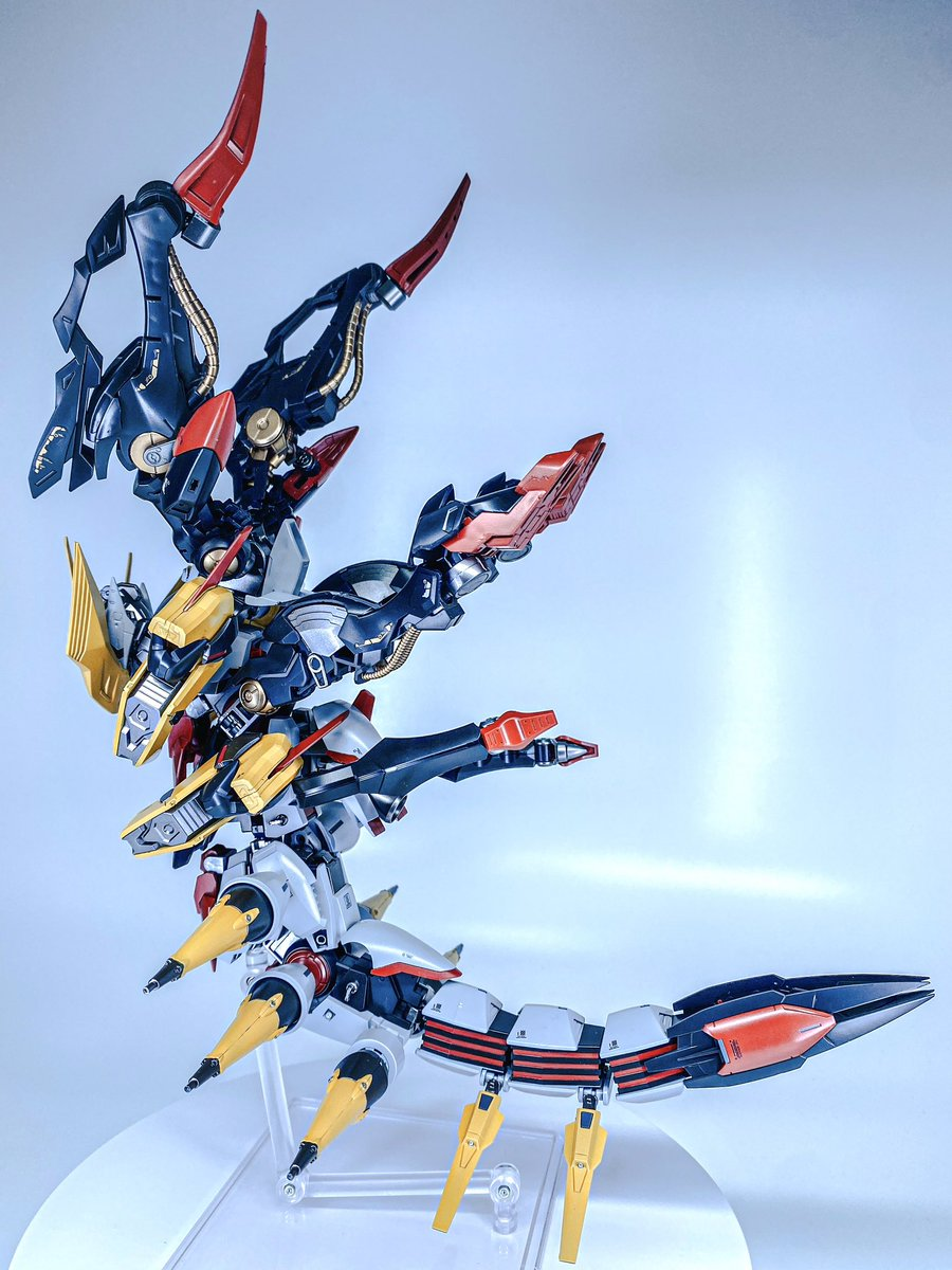 這次同樣採用許多鋼普拉各部的零件,透過不斷的嘗試組裝,想辦法盡量貼近「騎拉帝納 起源形態」的身形姿態,