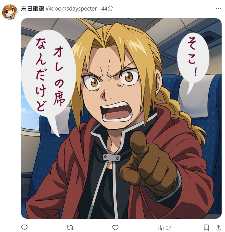 在聲優界頗具名氣,配音著名角色包含 : 《鋼之鍊金術師》愛德華·艾力克、《數碼寶貝大冒險02》一乘寺賢與《進擊的巨人》漢吉·佐耶的聲優 - 朴璐美。近日在自己的 X 上分享了一則在搭新幹線時遇到的「離譜經歷」,引起了不少網友討論。