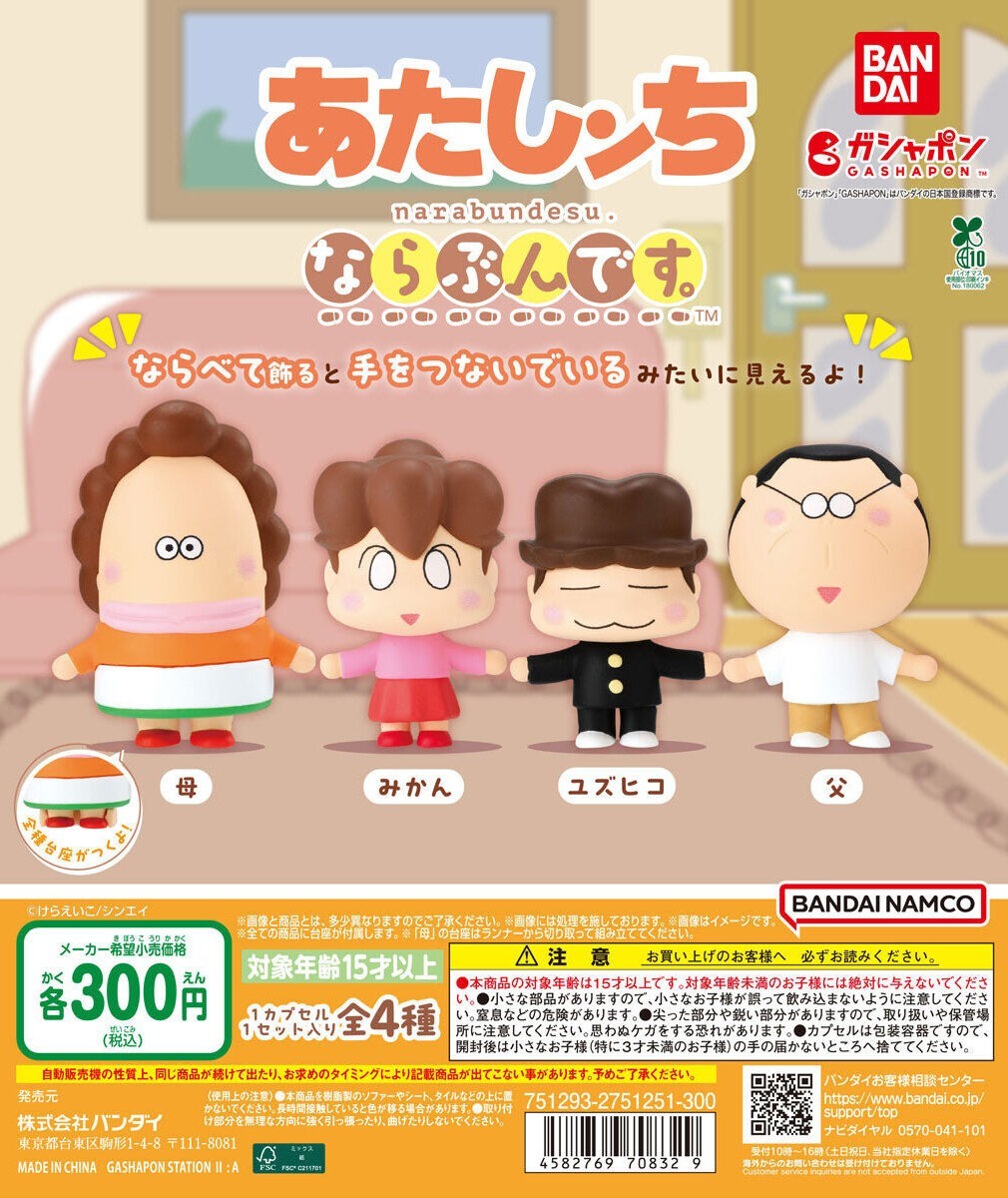 由日本萬代玩具公司轉蛋玩具品牌 GASHAPON 發行的人氣轉蛋玩具『排隊系列(ならぶんです。)』系列,發表了出自人氣動畫《我們這一家》的最新商品:「我們這一家排排隊」轉蛋!一共有四種款式,一轉參考售價為 400 日圓,預計於 2025 年 08 月開轉。