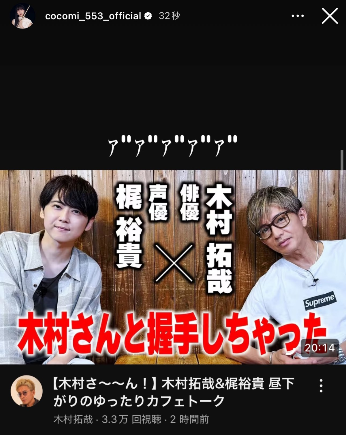 這段兩人互動影片上架後,Cocomi 也在Instagram限時動態中轉發,並寫下:「啊啊啊啊啊啊啊啊啊!」,完全藏不住激動的心情,老爸居然偷偷找我的偶像訪談都不講的嗎 ( ? ) 。