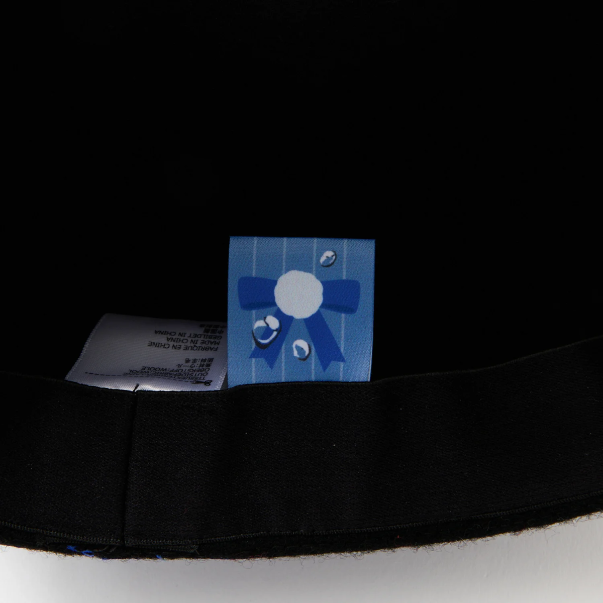 以黑色和藍色拼接的雙色設計,搭配柔軟溫暖的羊毛材質,舒適又好搭。帽子內側還縫有一枚雨衣風格的原創標籤,就算脫下帽子也還是滿滿的細節超加分!
