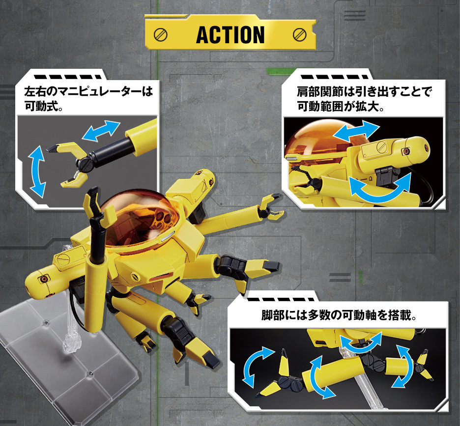 完全新規造型的「HG 梅德」採用黃、黑、透明棕等零件成型色製作,以精密造型再現駕駛蓋的開閉機構,以及艙內的座椅、控制面板與操縱桿等豐富細節。此外配件中還附有單芯線零件,能夠再現雙臂連接本體的動力管構造。