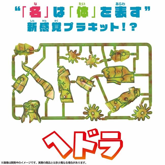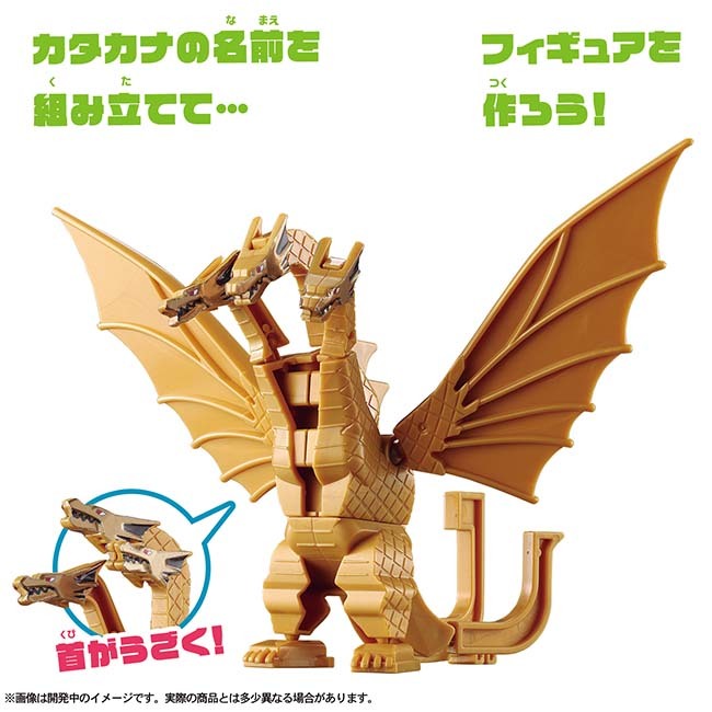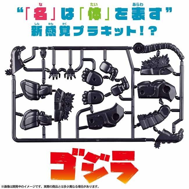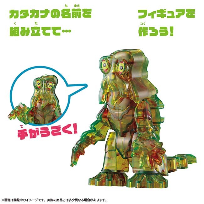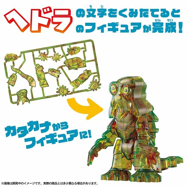『假名組裝模型』是零件數量極少、能夠輕鬆組裝完成的可動式組裝模型,商品特別針對模型板件的排列進行設計,讓組成身軀的各部零件表現出日文原文中,怪獸名字的片假名文字。