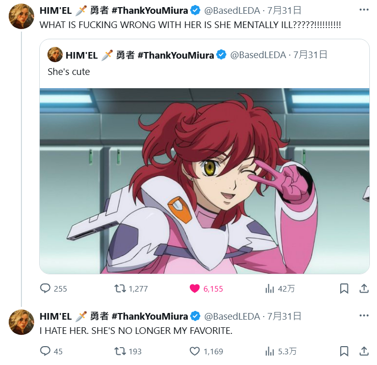 先前介紹過,海外推主 HIM'EL ( @BasedLEDA ) 因為觀看《機動戰士鋼彈0083:星塵回憶》煞到妮娜劇情卻讓他崩潰,成為日本與海外網友關注的紅人。近期他也看了《機動戰士鋼彈00》,又喜歡上劇中的女角「妮娜·崔尼提」,沒想到這個角色的劇情發展讓他大為驚訝,讓他又發文崩潰,讓不少網友直呼他根本是踩雷專業戶 XD。