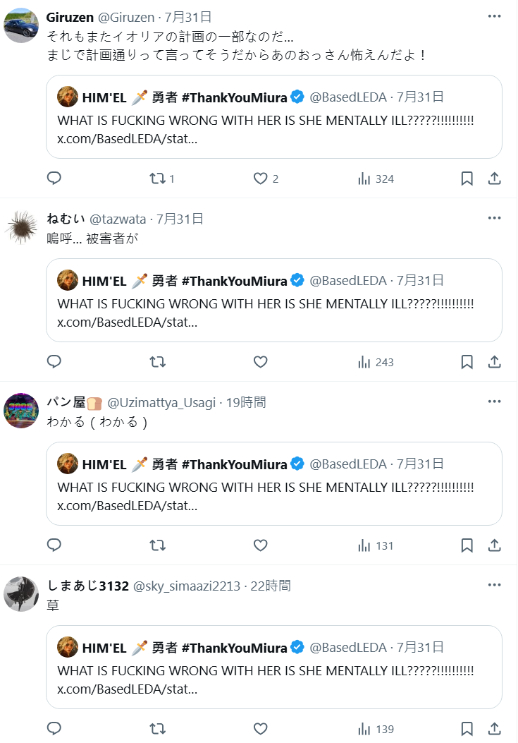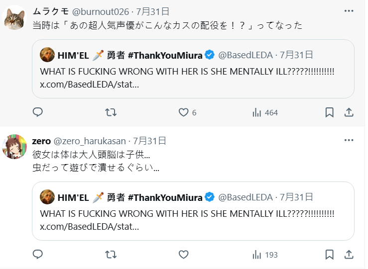 HIM'EL 的反應不少日本網友也關注,直呼當時動畫播出就給人一種「用上釘宮這種超人氣聲優居然配一個這麼惡劣的角色」。