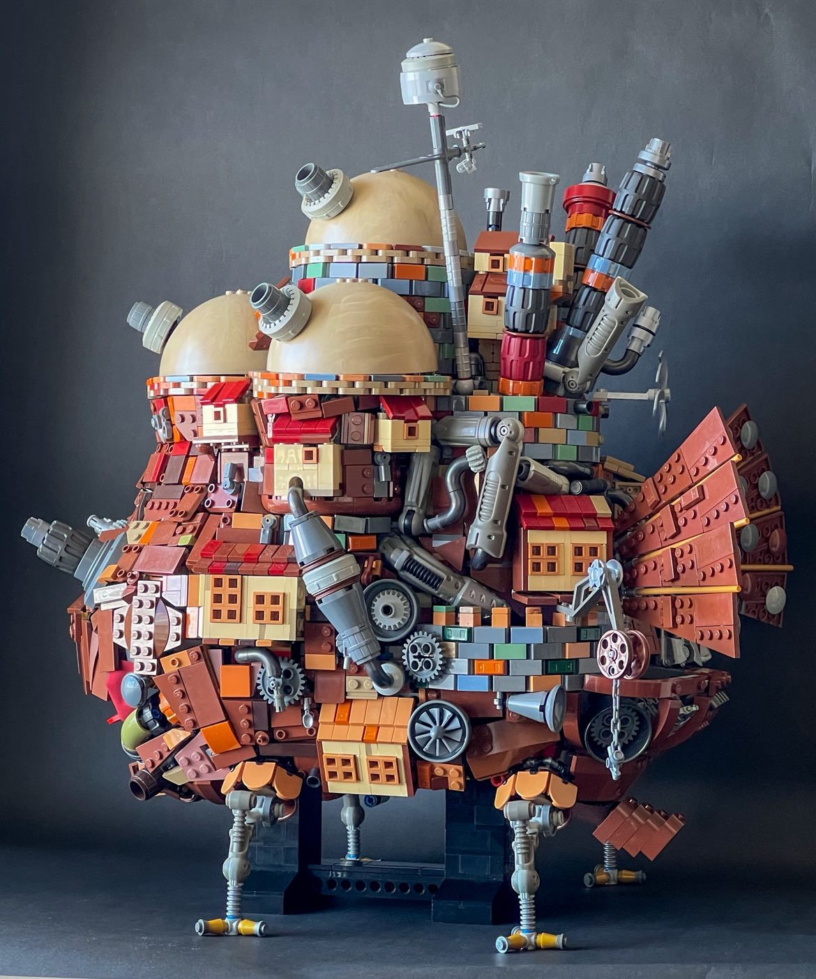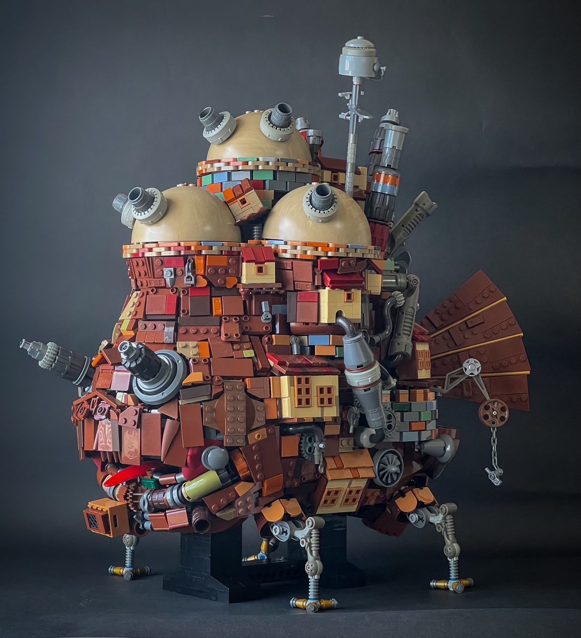 日本的 LEGO MOC 達人 Sakiya Watanabe(創作帳號 n.a.b.e_mocs)展現驚人的MOC創作功力,他以宮崎駿動畫鉅作《霍爾的移動城堡》(Howl’s Moving Castle)為主題,打造出一座宛如能呼吸的奇幻機械巨城。 整體結構以約 5,000 顆積木拼砌而成,製作期間歷時兩個月,從構造技巧、零件選用到色彩設計,無一不展現他對積木語彙與動畫意境的極致還原!