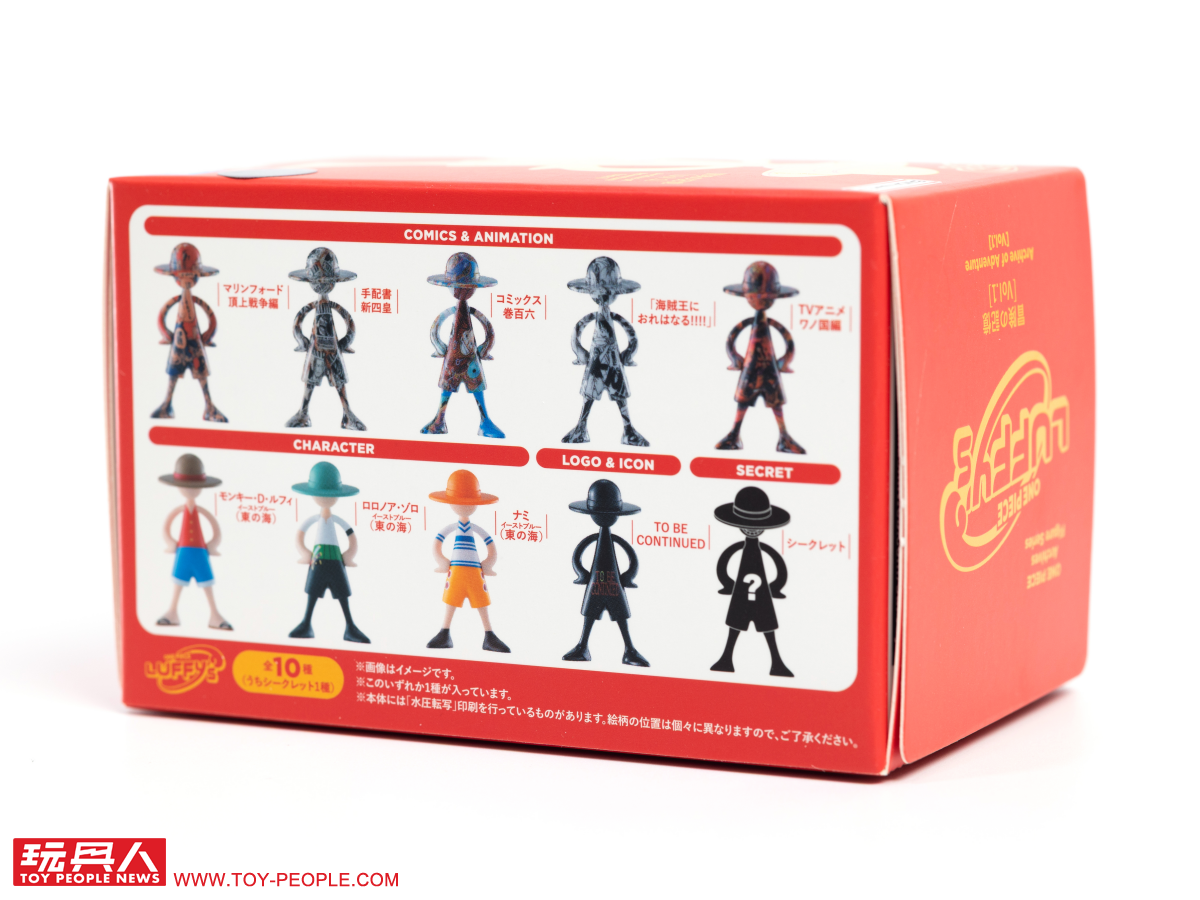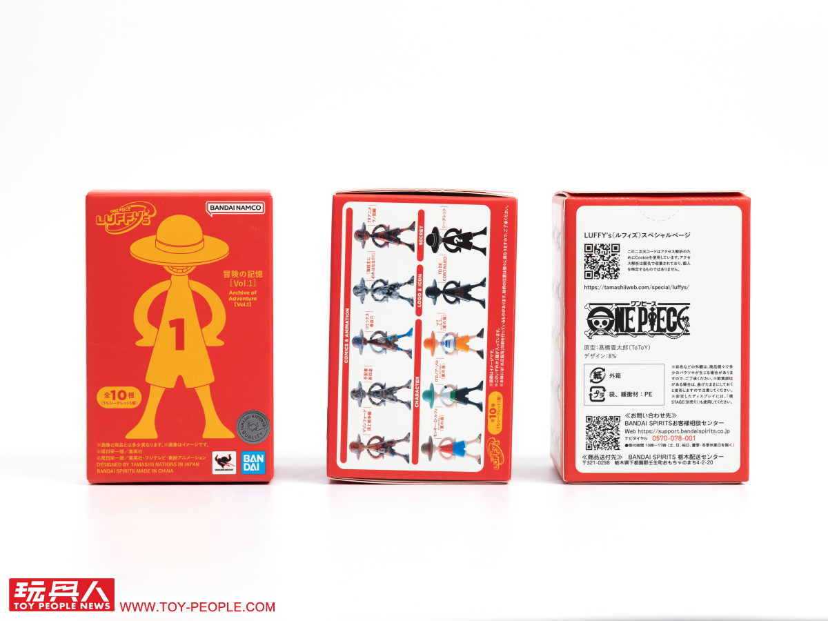 ▼ 每小盒也充分標示了所有的款式,並在正面 LUFFY's 剪影的身上印刷了代表「冒險的記憶 [Vol.1]」的 1。