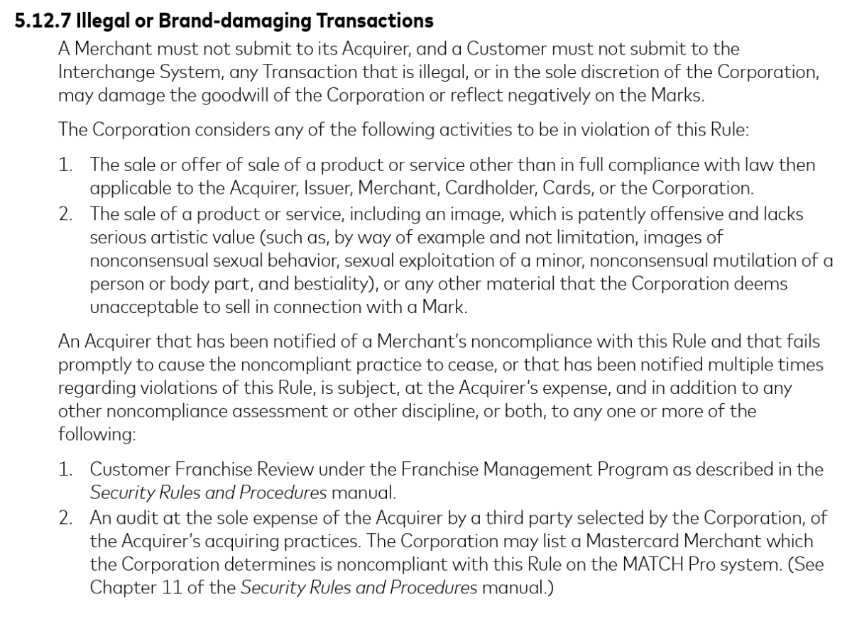 Steam 的母公司 Valve 說明,他們有試圖和 Mastercard 直接聯繫,但被拒絕,最後只能透過支付中介或銀行傳遞訊息。Valve 也提到,支付業者引用了 Mastercard 的一條規定「第 5.12.7 條」,這條規則禁止平台處理任何可能損害品牌形象的交易。