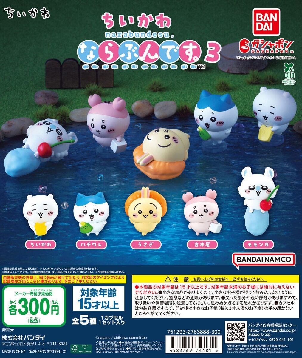 由日本萬代玩具公司轉蛋玩具品牌 GASHAPON 發行的人氣轉蛋玩具『排排站系列(ならぶんです。)』系列,發表了《吉伊卡哇》主題最新商品:「吉伊卡哇排排站3」轉蛋!一共有五種款式,一轉參考售價為 300 日圓,預計於 2025 年 08 月開轉。