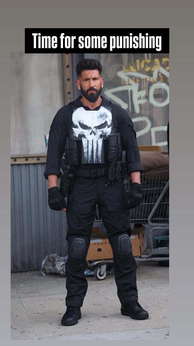 另一邊,強·柏恩瑟則在紐約拍攝 Disney+ 特別節目《制裁者》,並以全新黑色戰術裝扮亮相,新服裝保留經典白色骷髏標誌,整體更加低調、厚實,完全符合制裁者的戰場氛圍與街頭正義感。