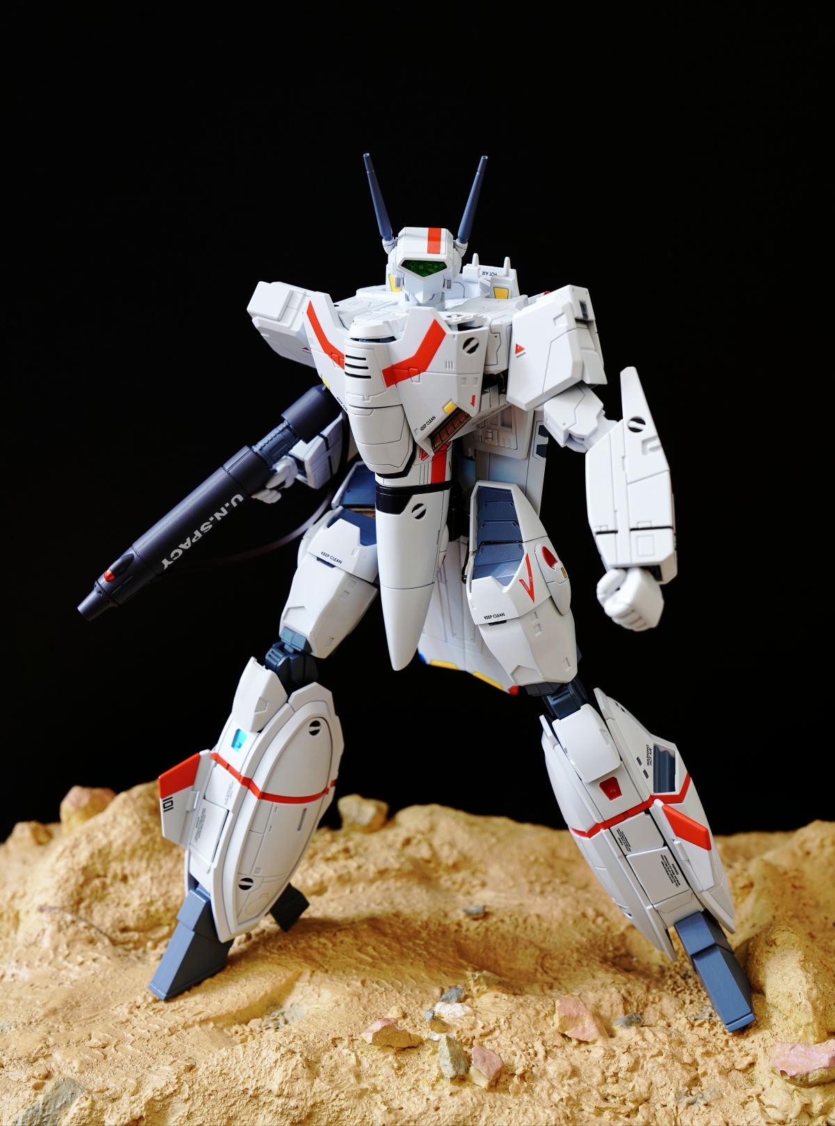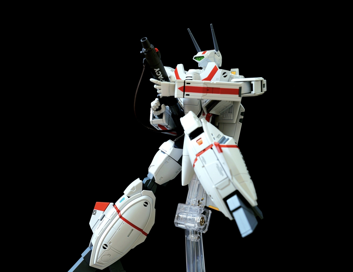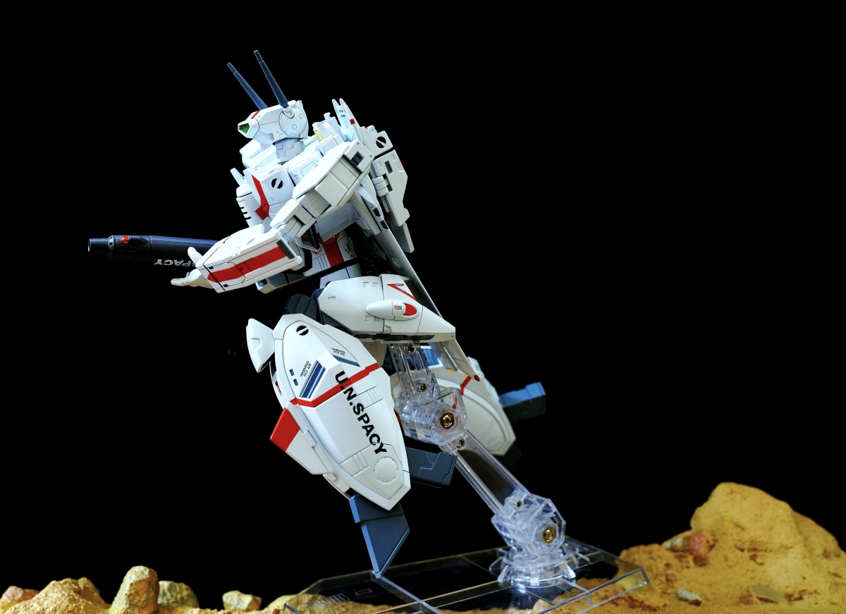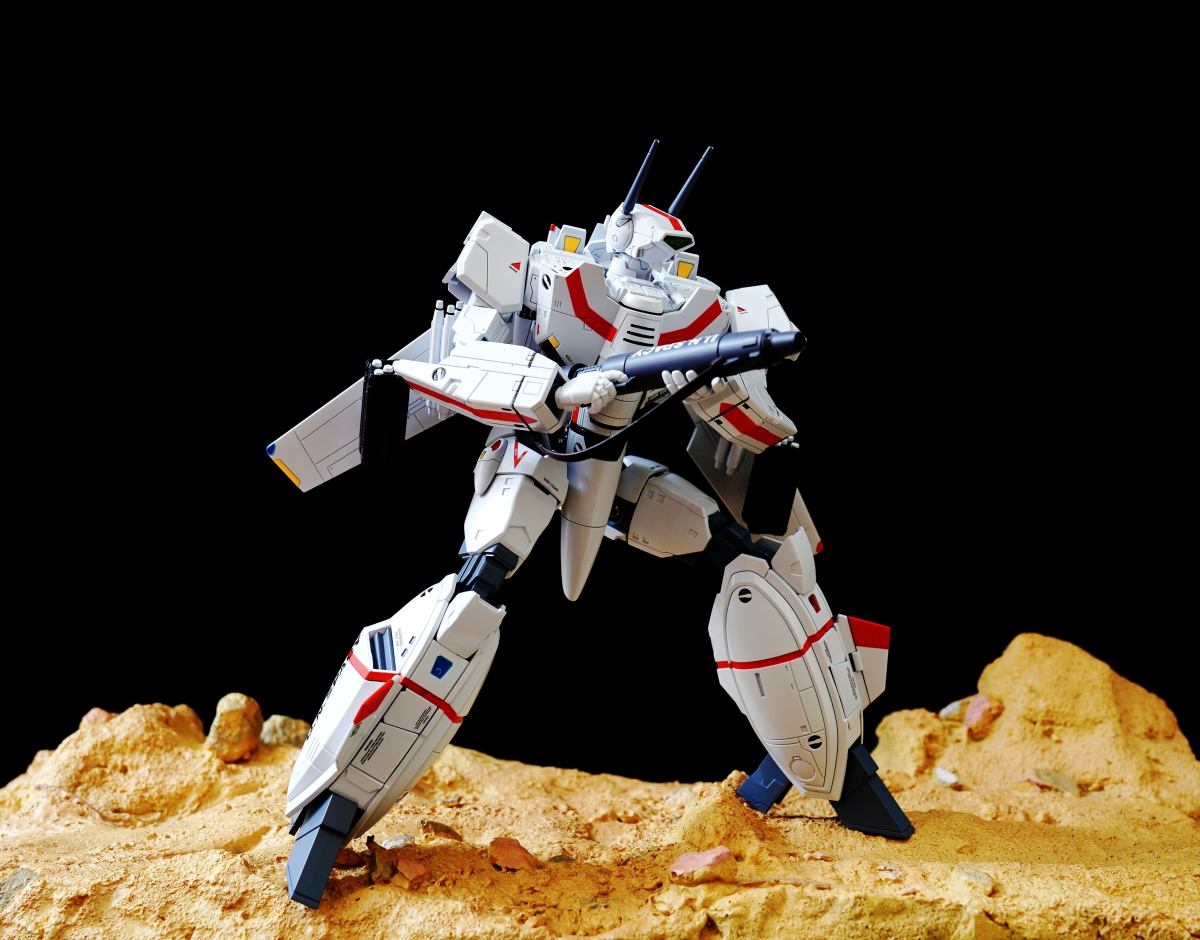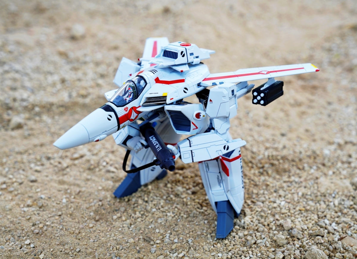 Battloid Mode 全高約 21 cm,配件主要是造型手、佩鎗、"摭醜"甲及台座。接近完全變形,本體以傳統的白紅作主色。刻線、Marking 及造工十分細緻,著陸架及駕駛艙的內構亦忠實再玩,加上對應紫光燈呈現夜光效果,可玩性很高!