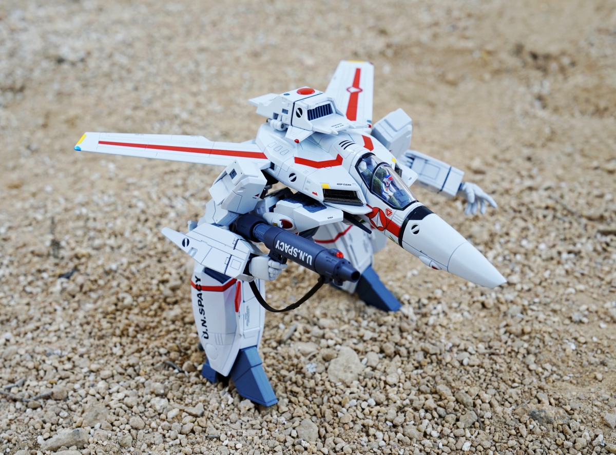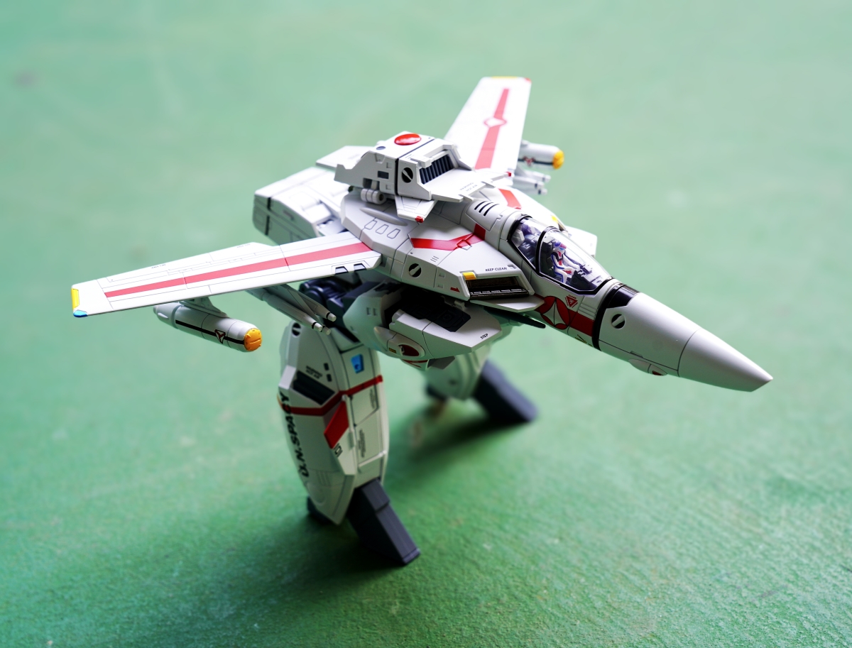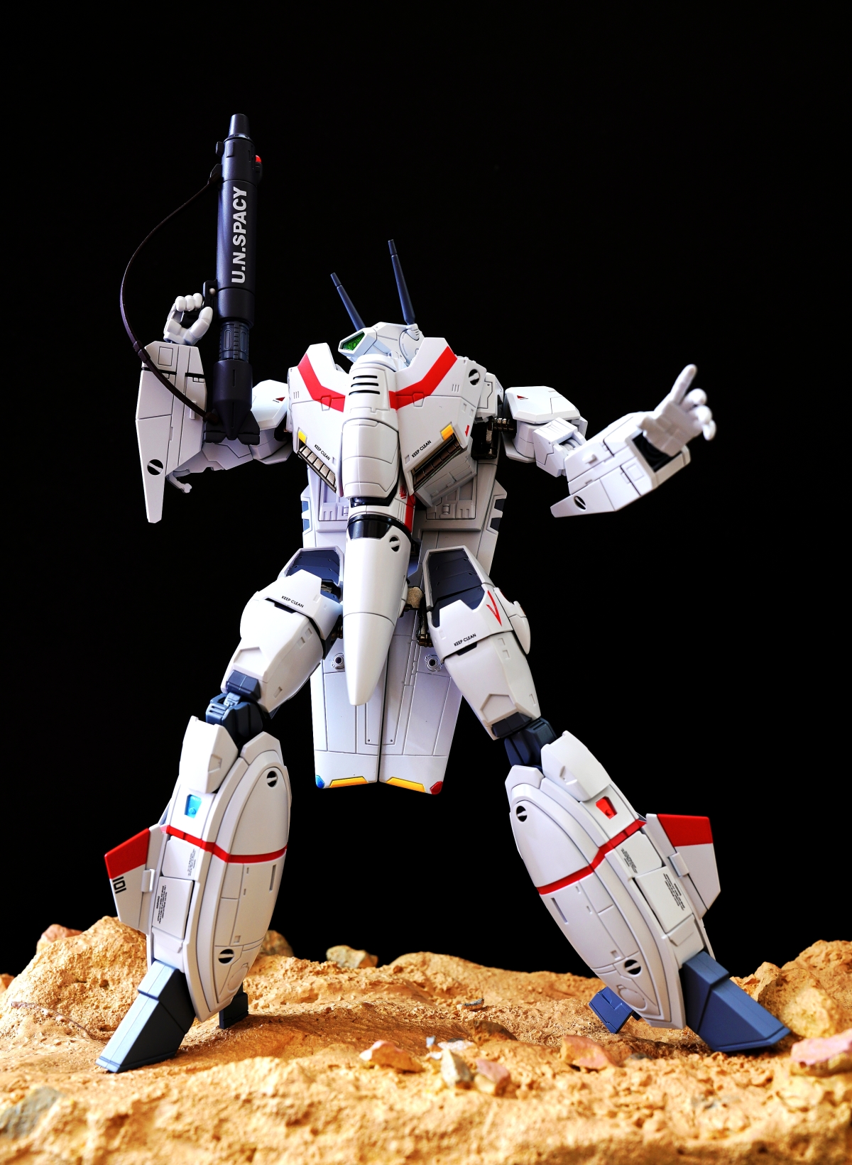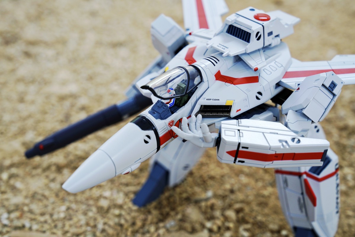 Battloid Mode 全高約 21 cm,配件主要是造型手、佩鎗、"摭醜"甲及台座。接近完全變形,本體以傳統的白紅作主色。刻線、Marking 及造工十分細緻,著陸架及駕駛艙的內構亦忠實再玩,加上對應紫光燈呈現夜光效果,可玩性很高!