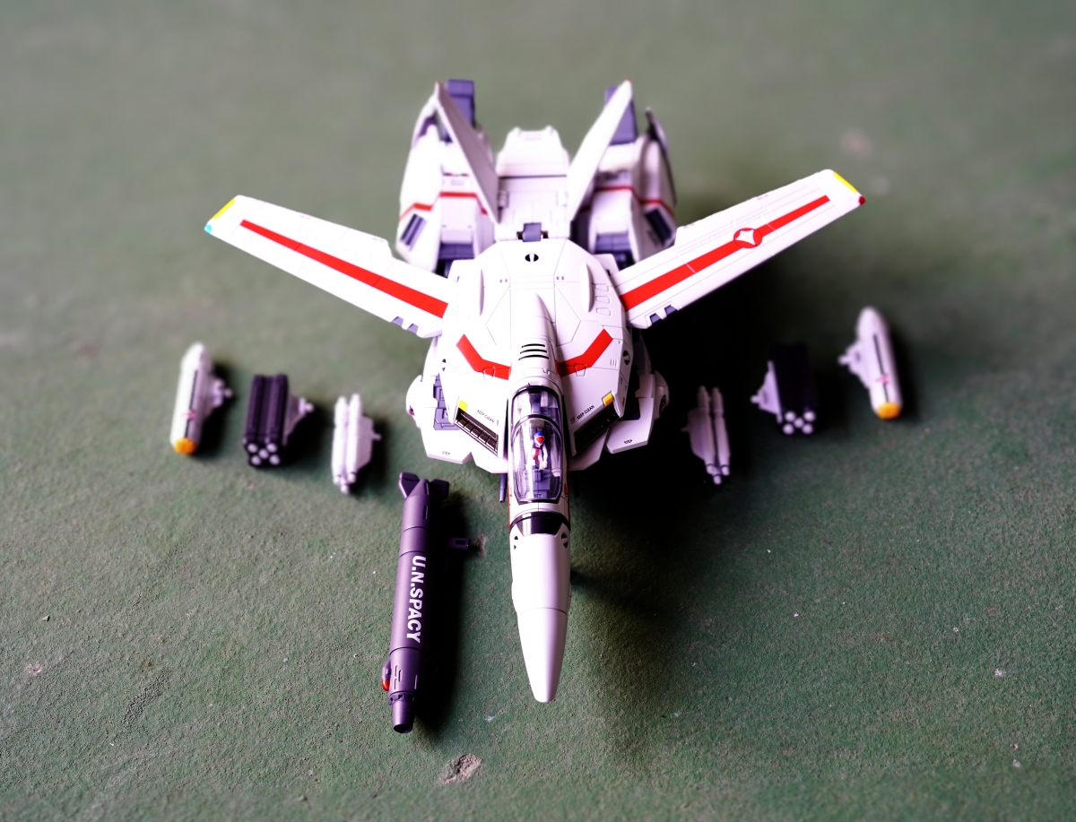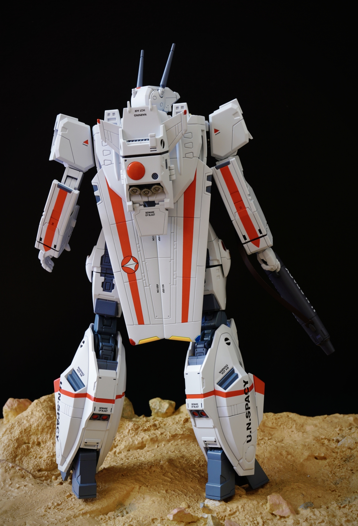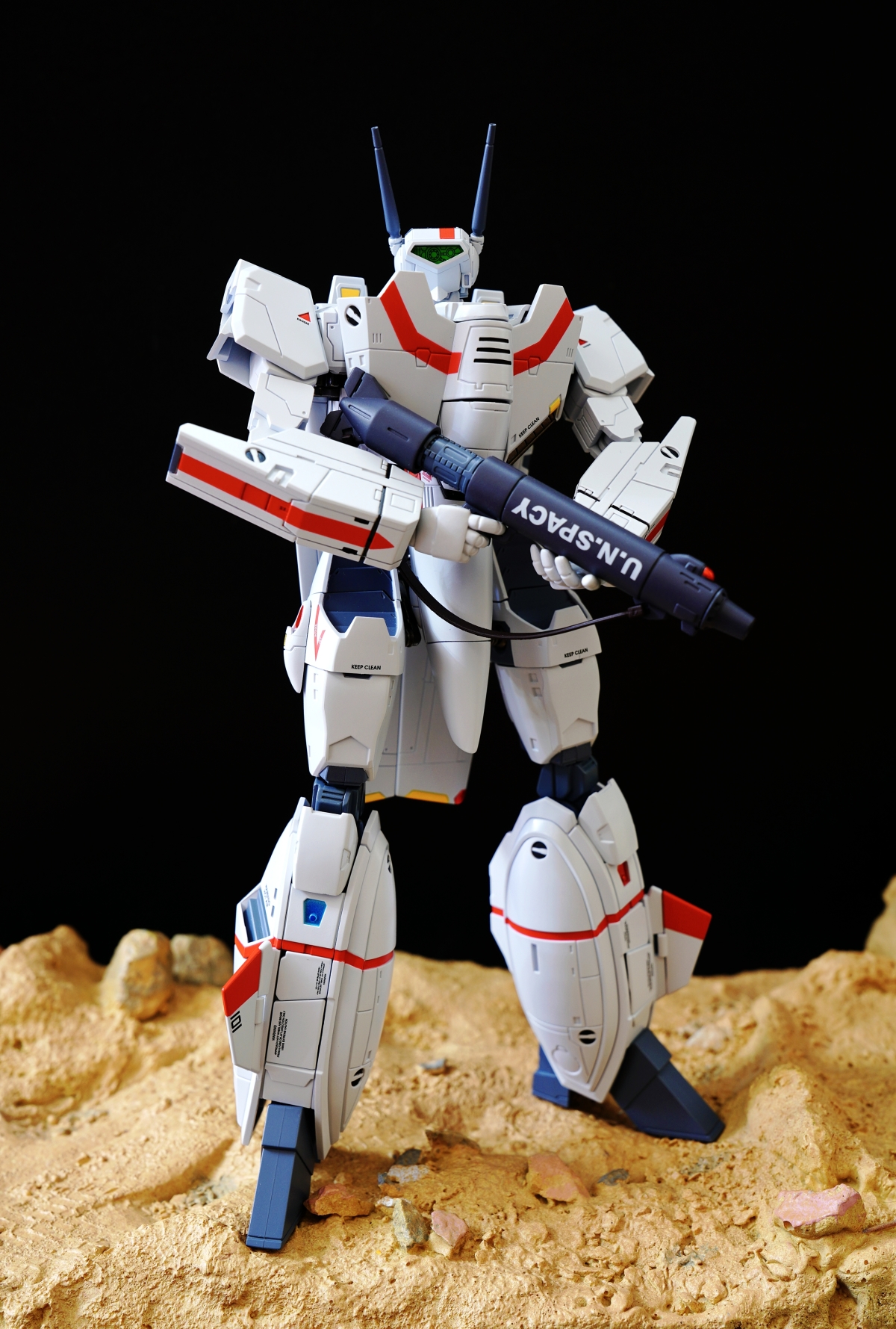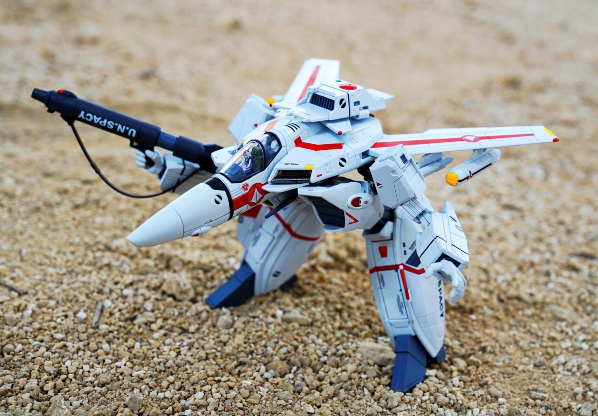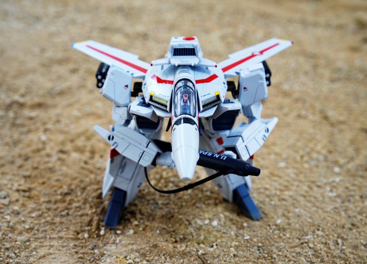 Battloid Mode 全高約 21 cm,配件主要是造型手、佩鎗、"摭醜"甲及台座。接近完全變形,本體以傳統的白紅作主色。刻線、Marking 及造工十分細緻,著陸架及駕駛艙的內構亦忠實再玩,加上對應紫光燈呈現夜光效果,可玩性很高!
