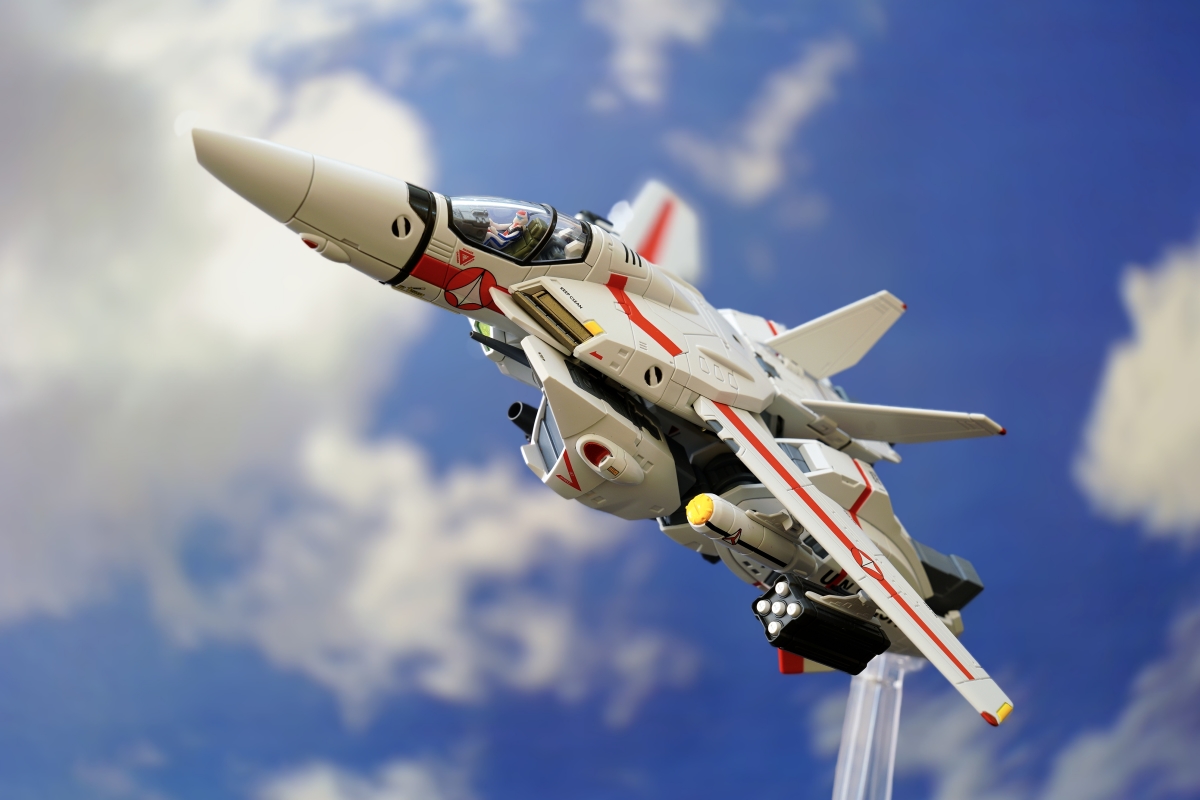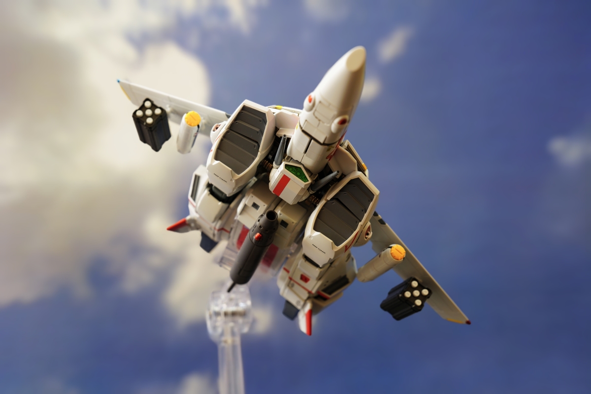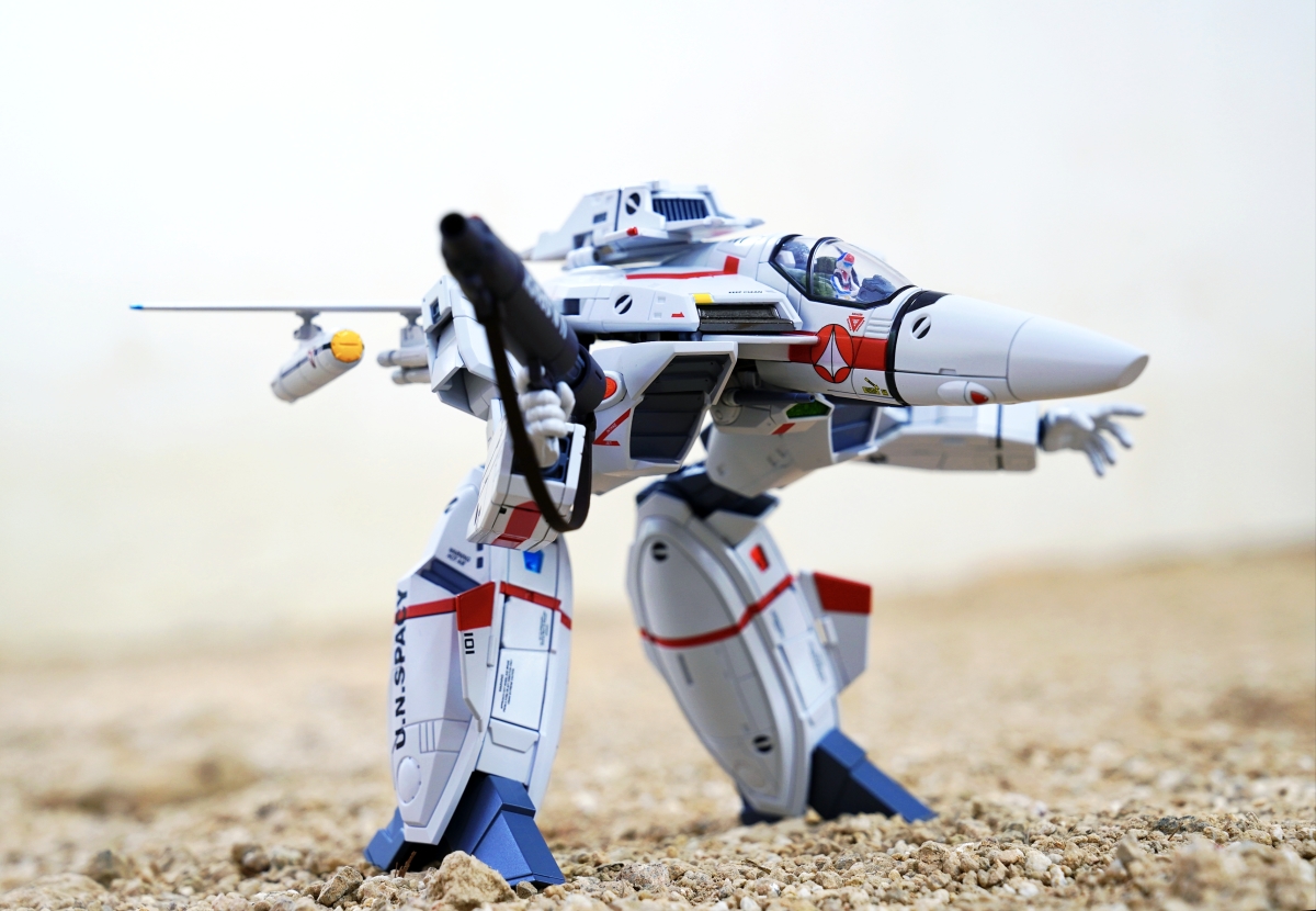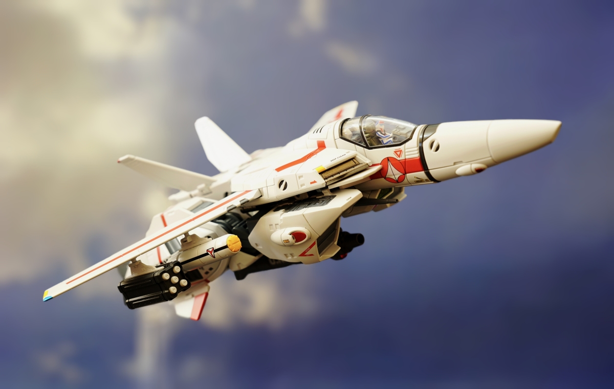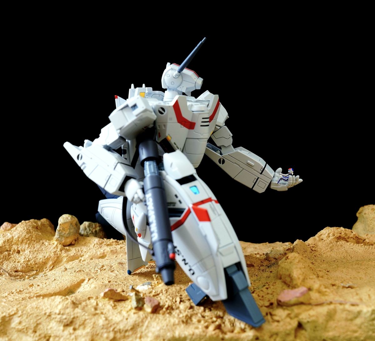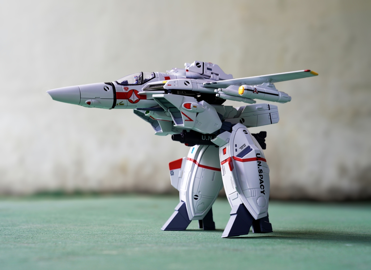 Battloid Mode 外型和可動性是史上最強的,我差點還以為是大張正己監修...... 作為菜迷我這次倒是避無可避......!膝關節設計精妙,另外中間金屬骨架及髖關節等均使用金屬支架,故變形時牢固度足夠!另外 VF-1J 更附有動畫中的槍帶;Fighter, Guardian 及 Battloid Mode 的變形亦算暢順,故可玩性高。就算變形,Battloid 的可動性亦比其他廠商為高。Guardian Mode 雙臂及大腿亦不會因機翼位置而妨礙了活動。部分關節較緊,小心錯手而把關節屈斷,玩家把玩時須留意。須要改善的地方是手腕球型關節較鬆,簡單的可以用少量 blu tape 黐在球形關節便可解決。另外鎗帶容易鬆脫,持鎗時需特別留意!以上!