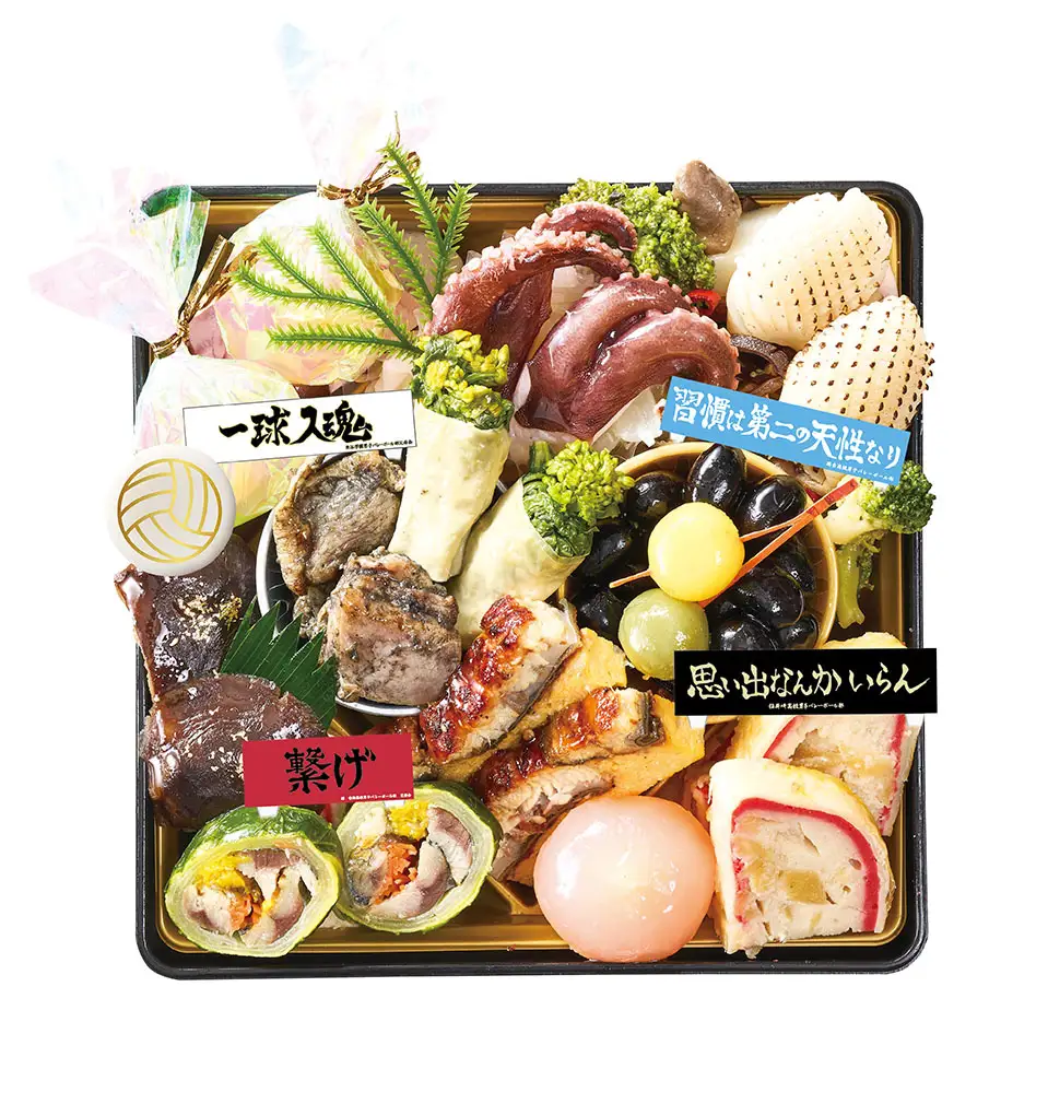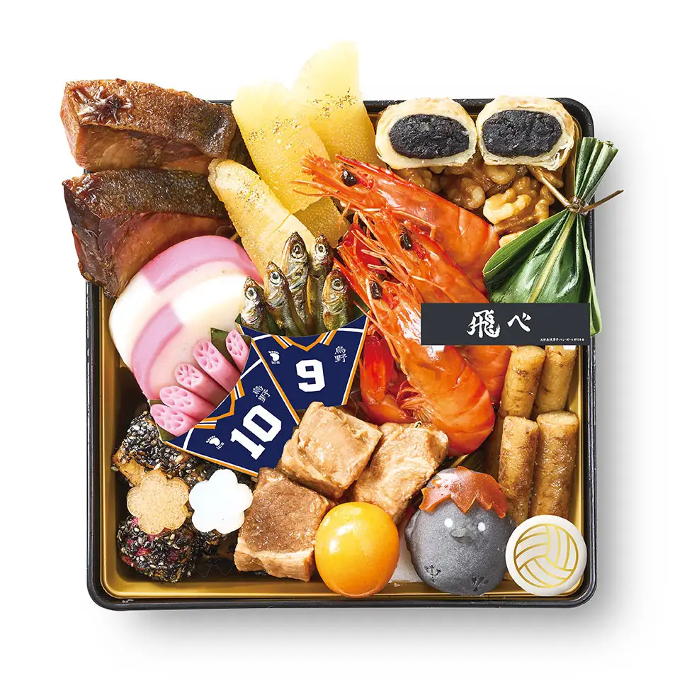 這款「排球少年!! 御節年菜2026」是官方首次推出的年菜組合,以動畫中各大學校為主題設計。與百年御節老店「山福」聯名合作,特別設計成三層美味年菜,完美融合日、洋、中式料理,並依據各校特色與角色形象進行菜色設計。