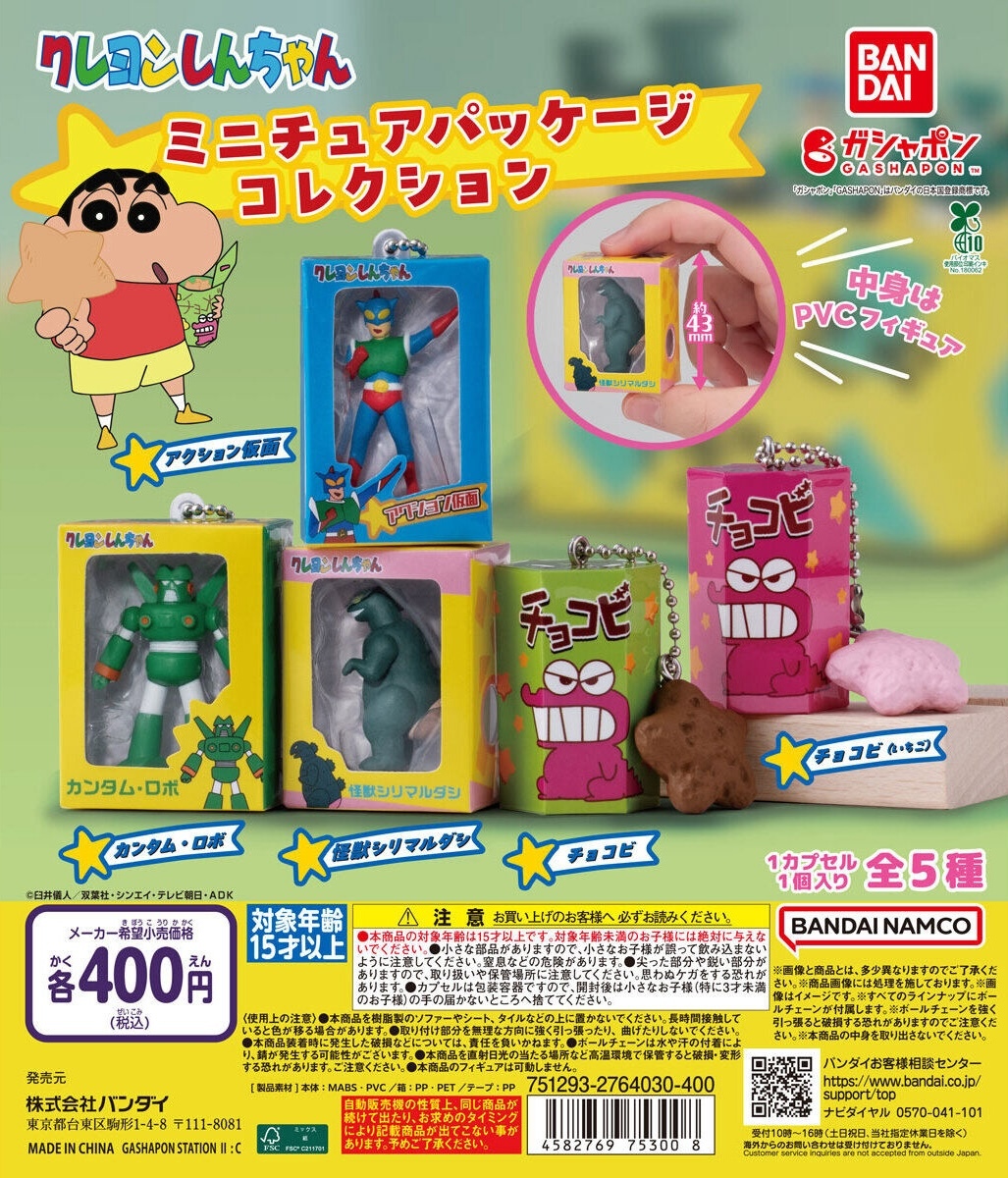 萬代公司轉蛋事業部 GASHAPON 推出以國民動畫《蠟筆小新》為主題的新商品——「蠟筆小新 迷你包裝收藏」轉蛋,參考售價為每轉 400 日圓,預計於 2025 年 08 月第二週開轉!