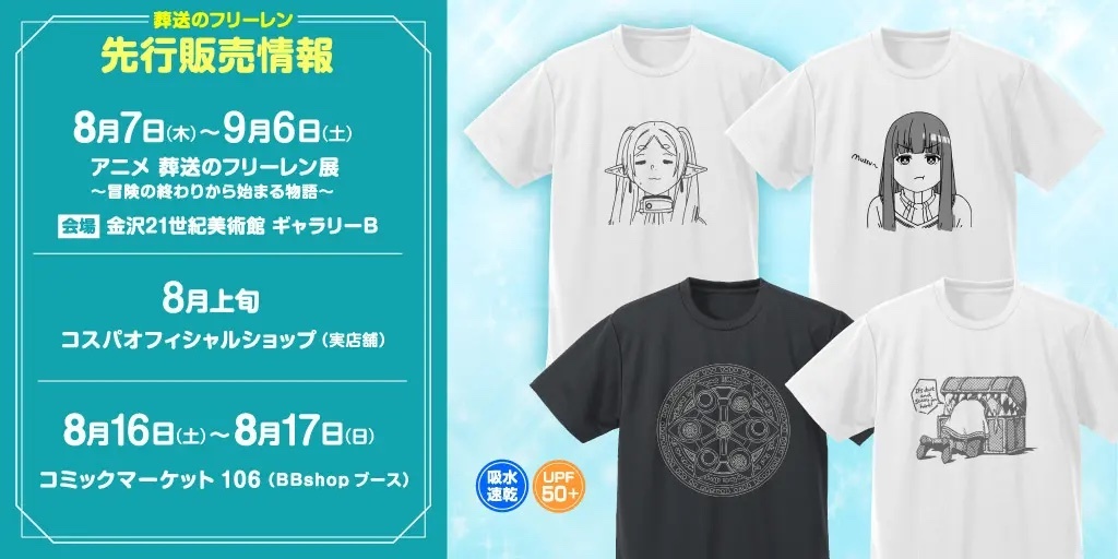 這回他們再次出招,攜手《葬送的芙莉蓮》推出全新商品,包含印有「芙莉蓮」、「費倫」圖樣的速乾 T 恤,以及「被寶箱怪吞掉的芙莉蓮」雙層不鏽鋼馬克杯等趣味滿點的實用週邊,其中 T 恤將於以下活動與實體店鋪搶先販售: