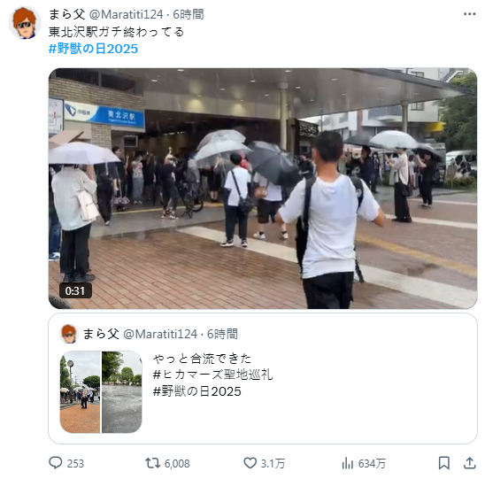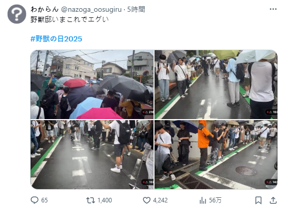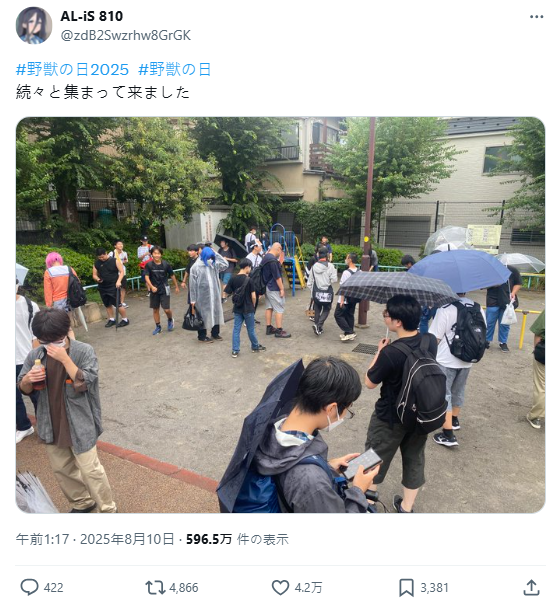 而每年的 8 月 10 日被這些粉絲稱作「野獸之日」,眾人會在東京世田谷區的下北澤地區集結形成年度朝聖聖「野獸邸」,今年也因為人數比過往還多,在當地造成喧鬧聲與不當行為,引發附近居民不滿,成為網路關注話題。