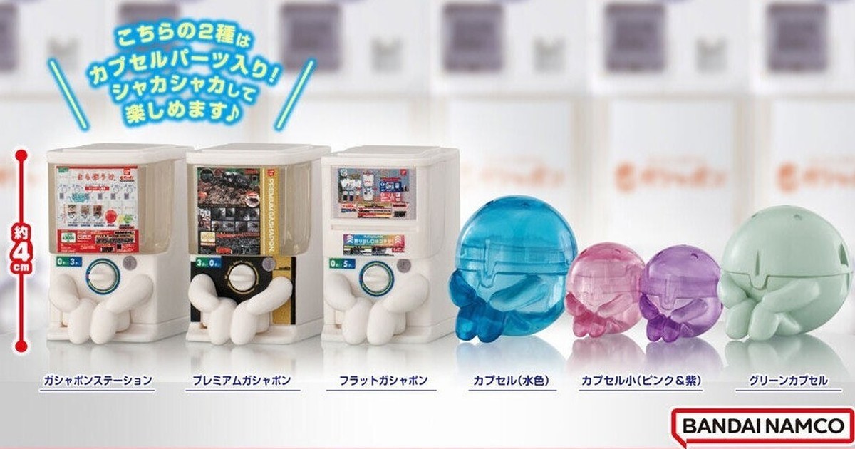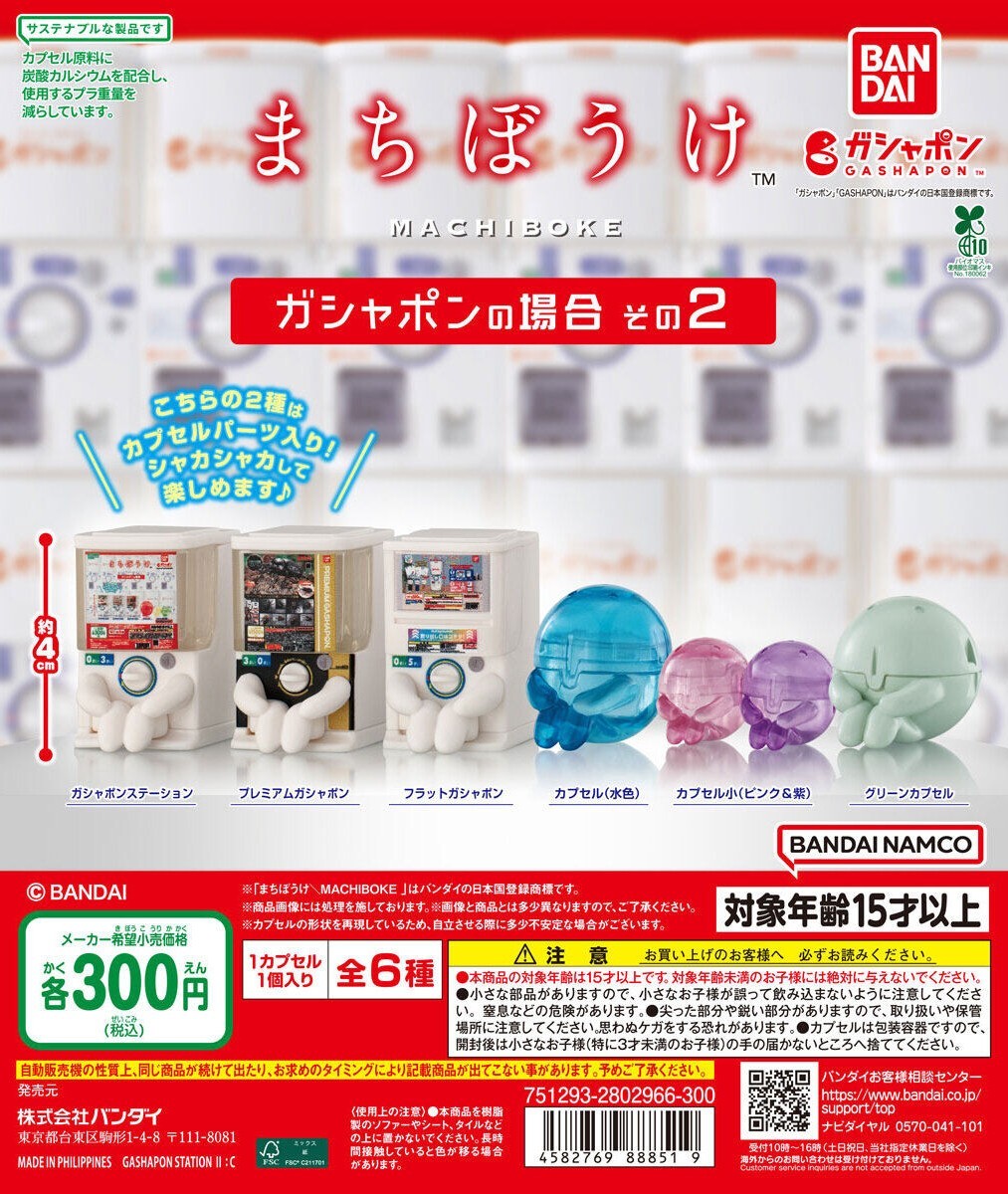 延續前作「等待中的GASHAPON」風格,這次的『等待中的GASHAPON2』轉蛋,再次將自家品牌的轉蛋機台擬人化,呈現出腳腳縮起來、雙手扶著膝蓋的動作,彷彿苦苦等待的模樣,可愛中帶著一點悲傷~收錄小尺寸的三款扭蛋機:GASHAPON扭蛋機、PREMIUM GASHAPON 高階扭蛋機、FLAT GASHAPON 平面扭蛋機,機台裡的台紙也精製還原!另外還有等待中的轉蛋殼(水色)、小轉蛋殼(粉紅、紫),以及綠色轉蛋殼,搭配玩具場景,就能拍出非常生動可愛的照片!