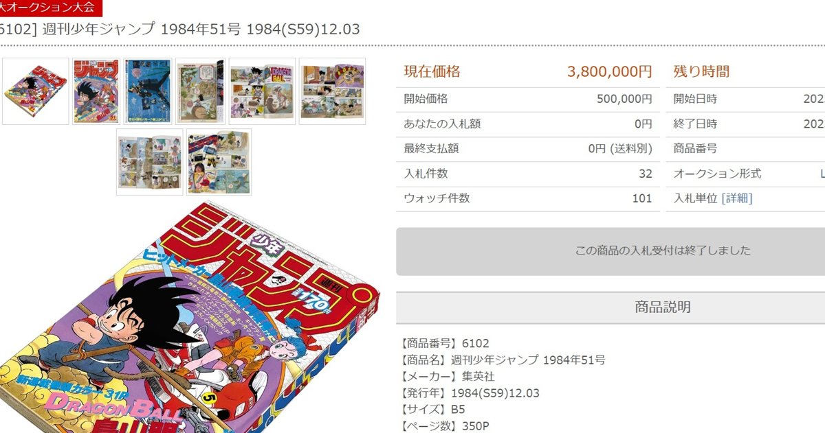 ▼ 之前日本拍賣會 「まんだらけオークション」以 380 萬日圓落槌的《七龍珠》正式開始連載的《週刊少年Jump》——1984 年第 51 期。