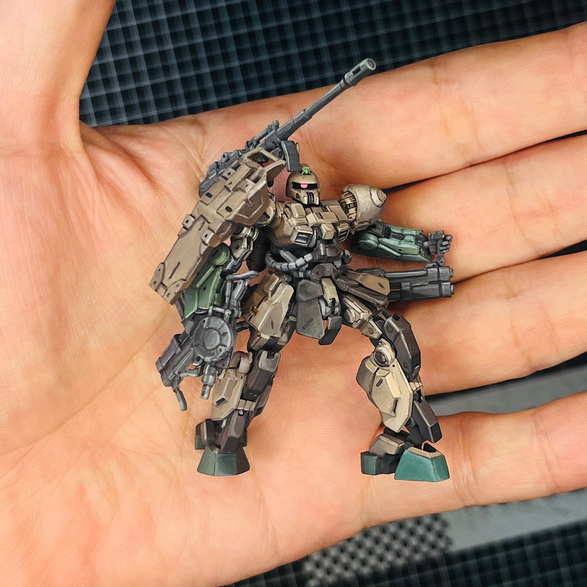 透過筆刷漸層搭配黑色描線,完全有 MG 盒繪的味道,即使是 ARTIFACT 這麼小的食玩模型也能做到,就知道推主的塗裝功力強大。