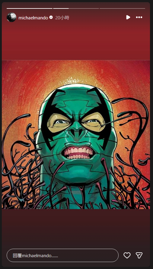 雖然他尚未出現在任何片場照中,但曼多近日於 Instagram 上貼出一張《返校日》時期的化妝照,並配上引人遐想的文字,讓外界聯想到漫畫中的一段情節——「蠍子人」麥克·加根曾成為第三任猛毒(Venom)宿主,並在加入「黑暗復仇者」(Dark Avengers)時假扮蜘蛛人。